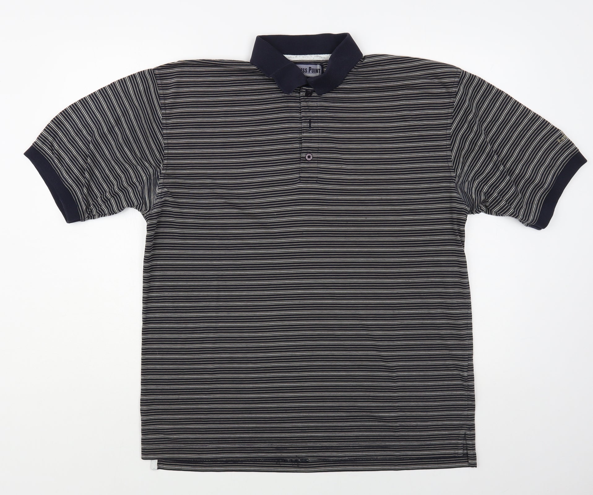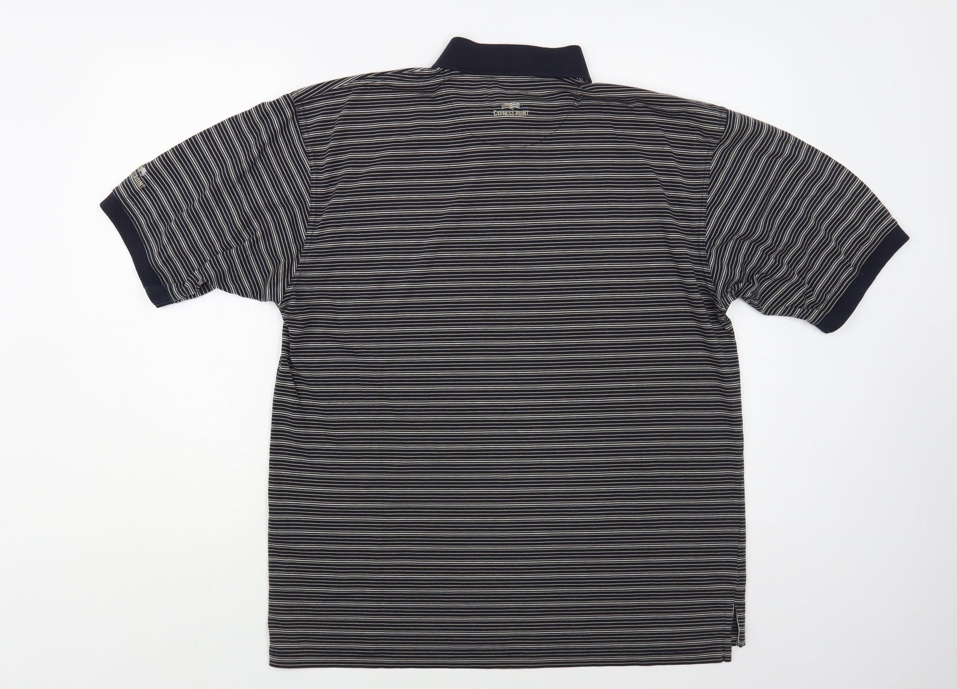 Cypress Point Mens Blue Striped Polyester Polo Size L Collared Button