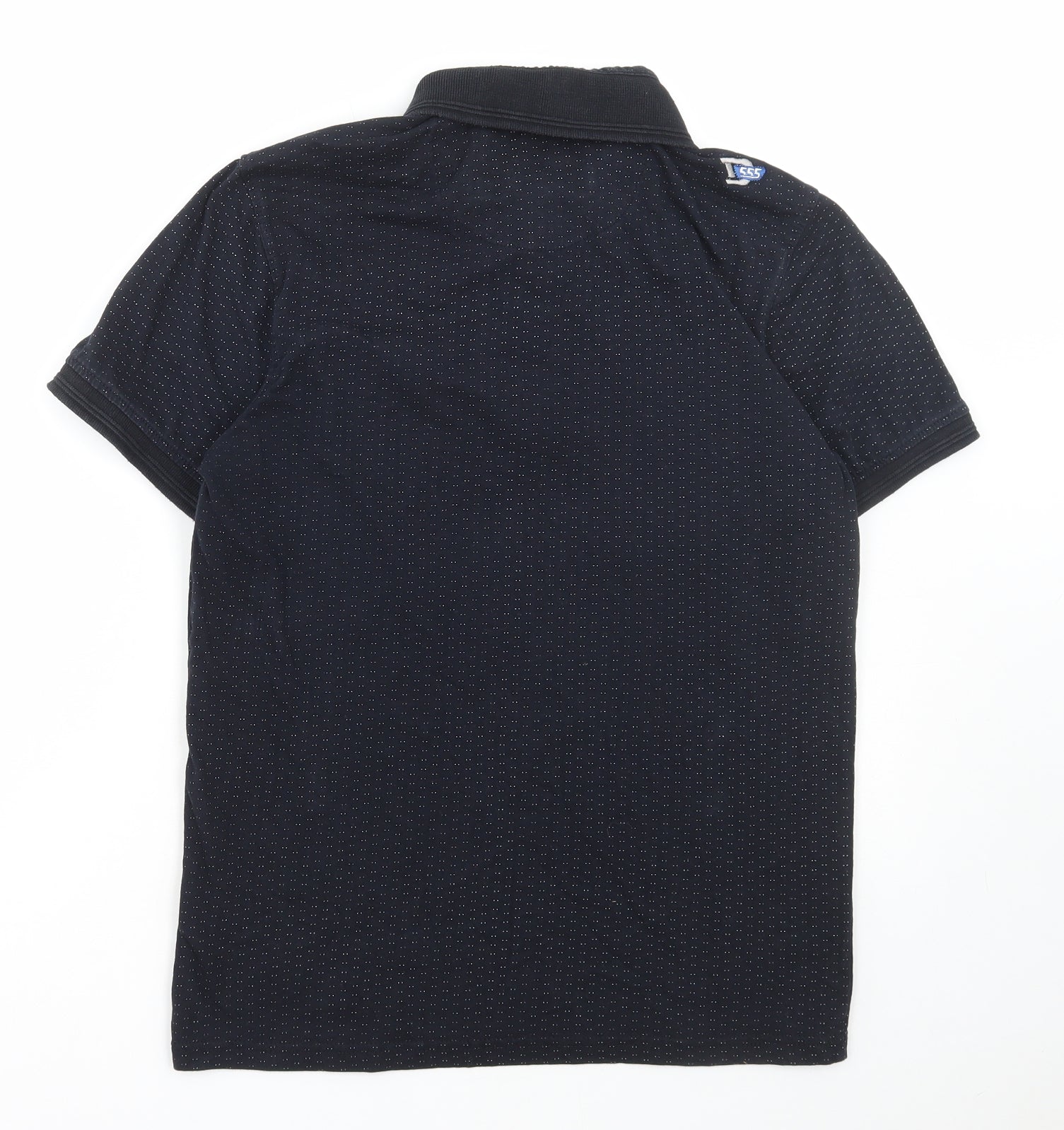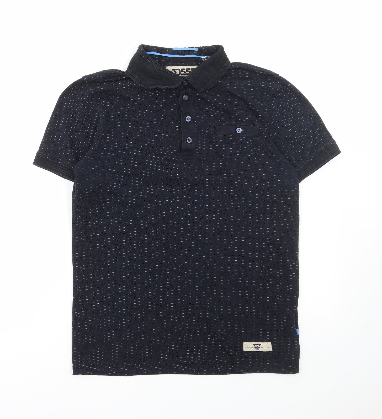D555 Mens Black Polka Dot Cotton Polo Size S Collared Button