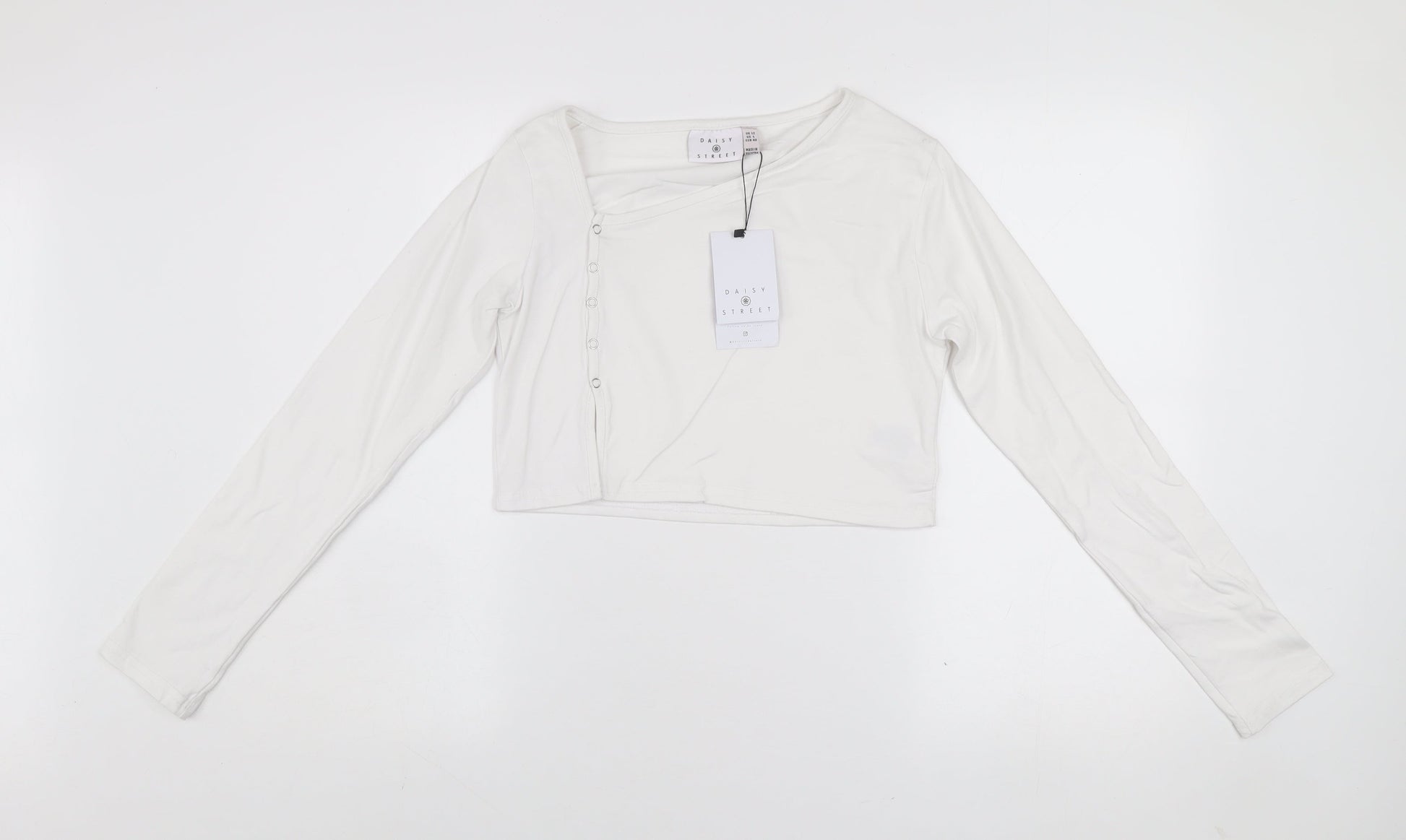 Daisy Street Women’s White Cropped Long Sleeve Button Slim Fit Top UK 12
