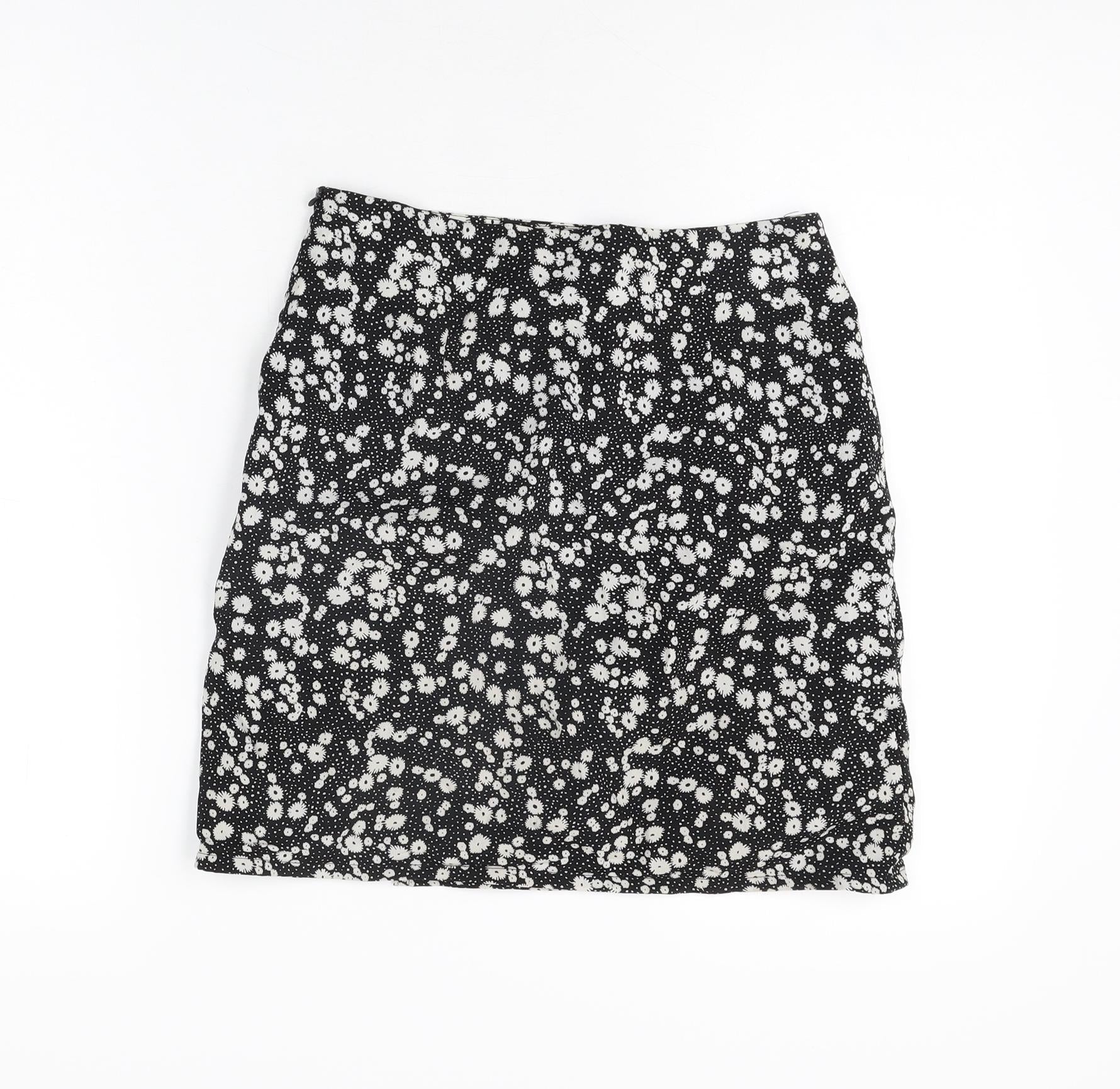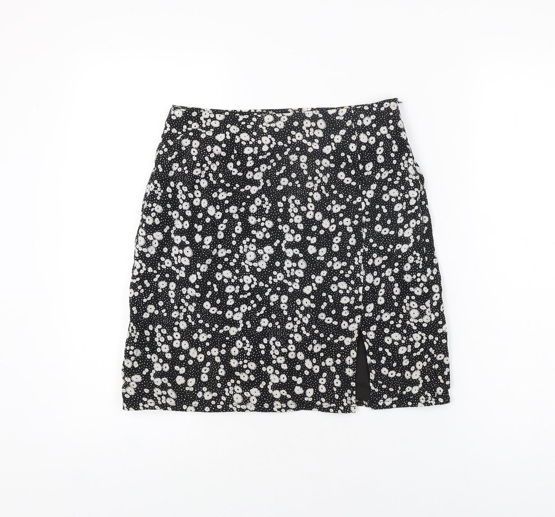 Daisy Street Womens Black Floral Polyester Mini Skirt Size 6 Zip