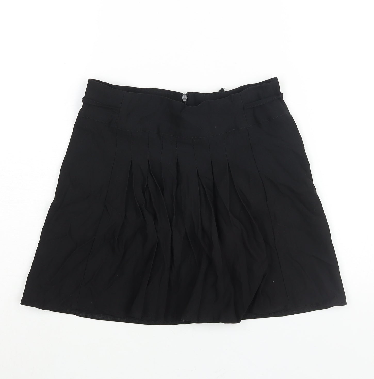 Daisy Street Womens Black Viscose A-Line Skirt Size 6 Zip - Pleat Detail