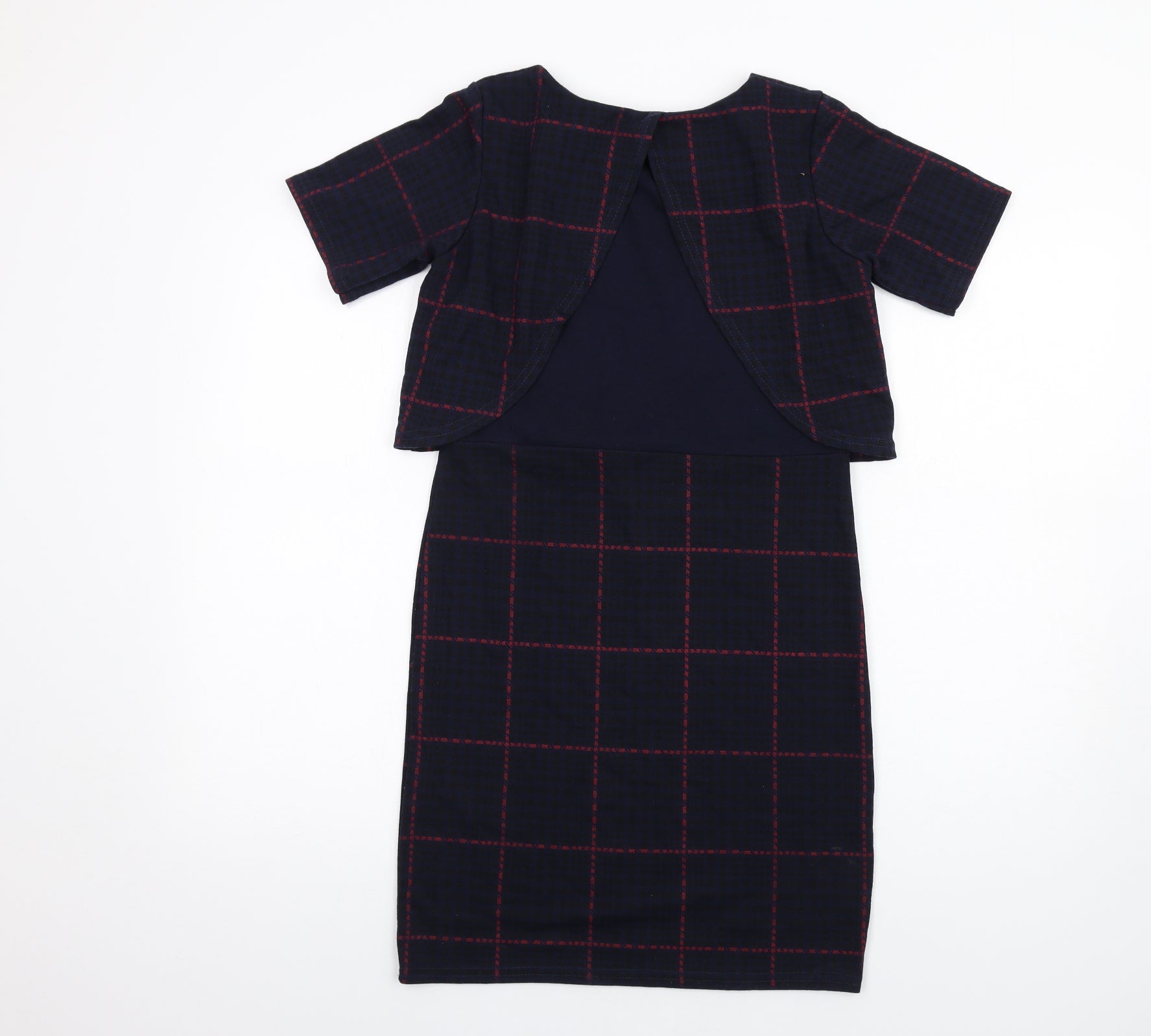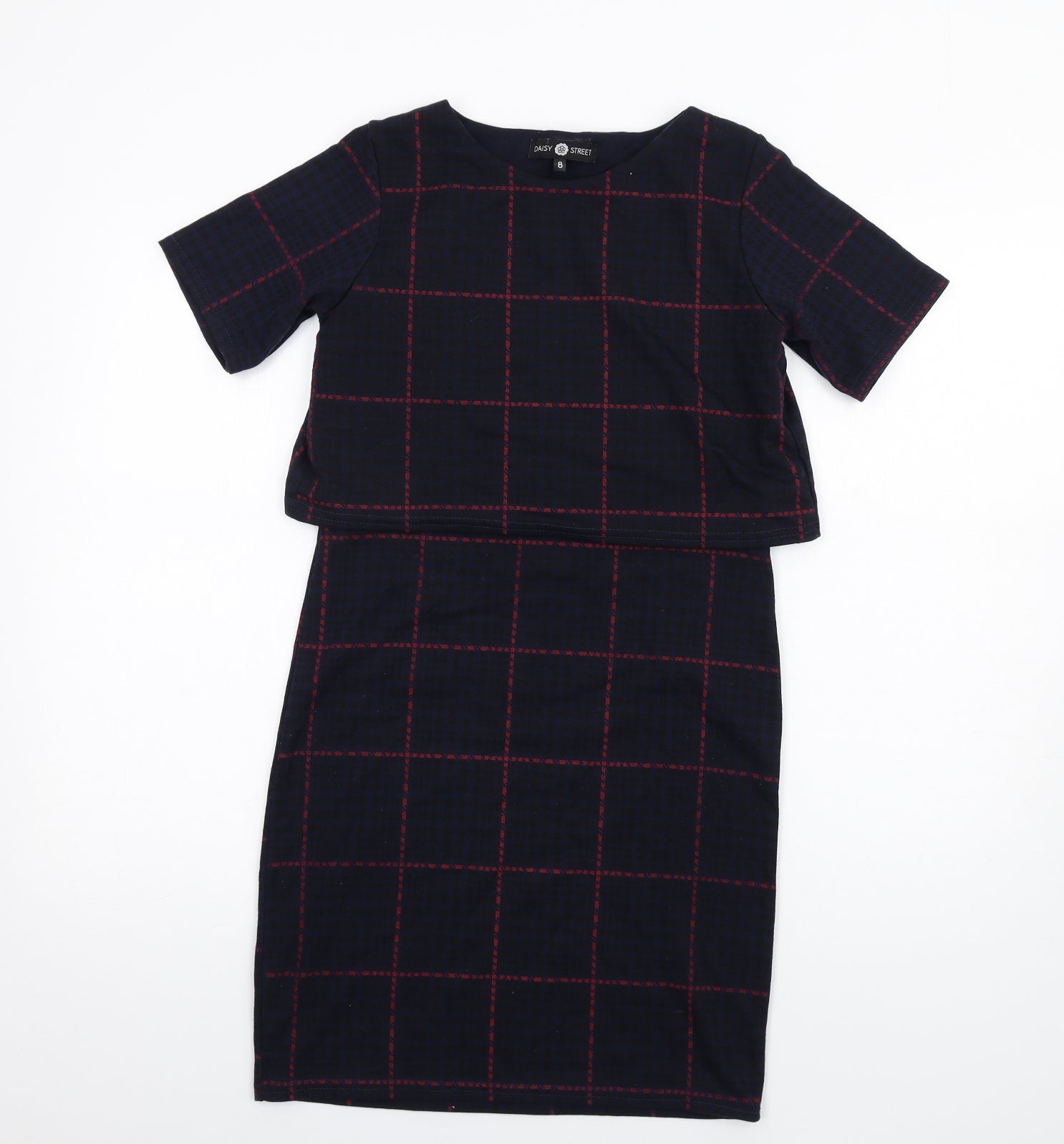 Daisy Street Womens Blue Plaid Polyester Pencil Dress Size 8 Round Neck Pullover