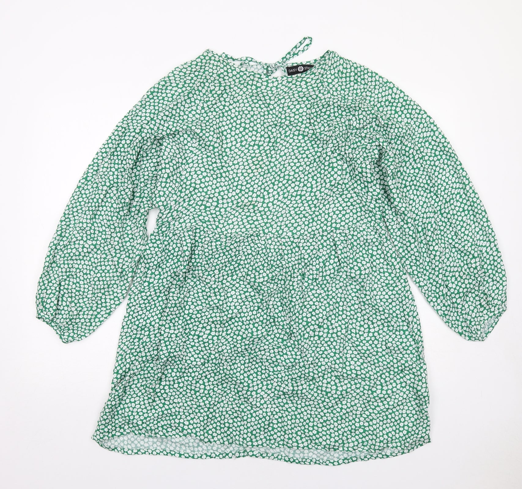 Daisy Street Womens Green Floral Viscose A-Line Size 6 Round Neck Pullover