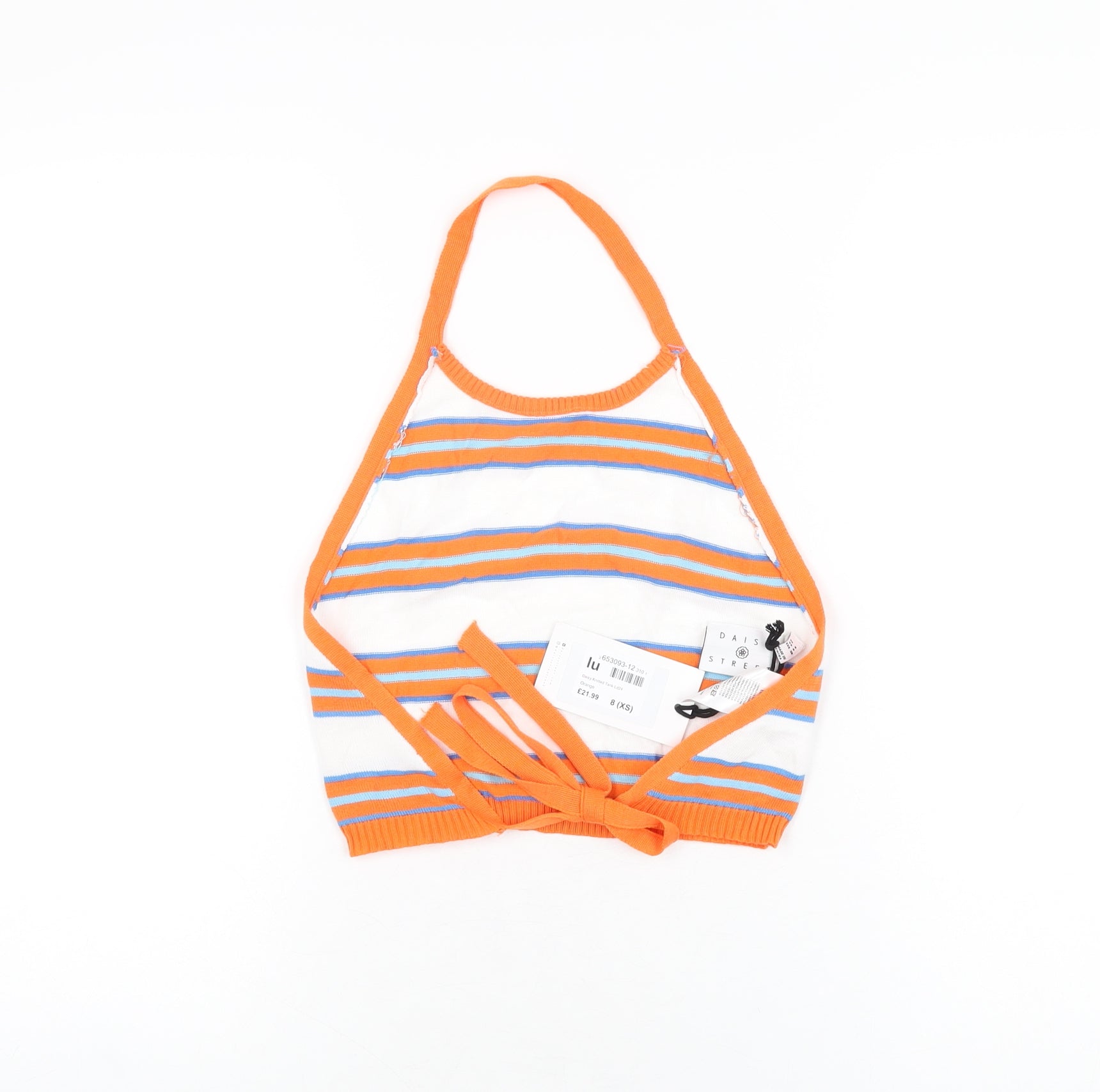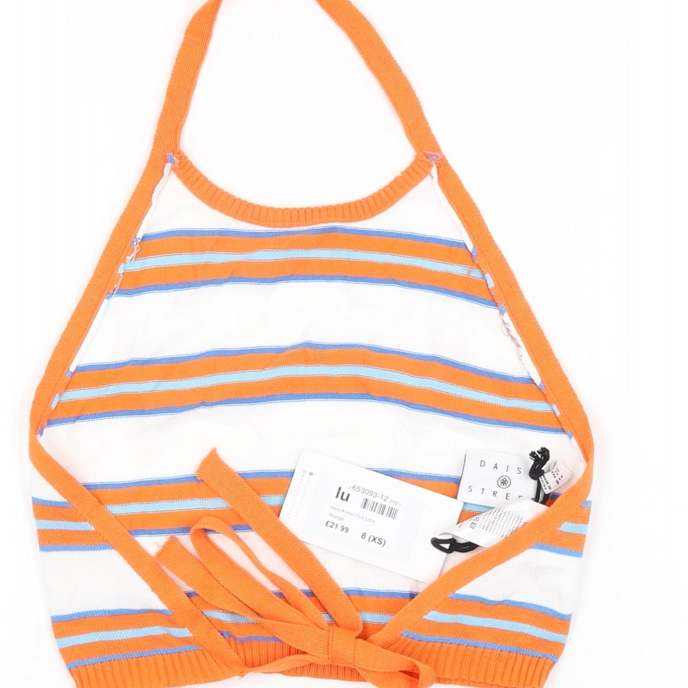 Daisy Street Womens White Striped Polyester Cropped T-Shirt Size 8 Halter