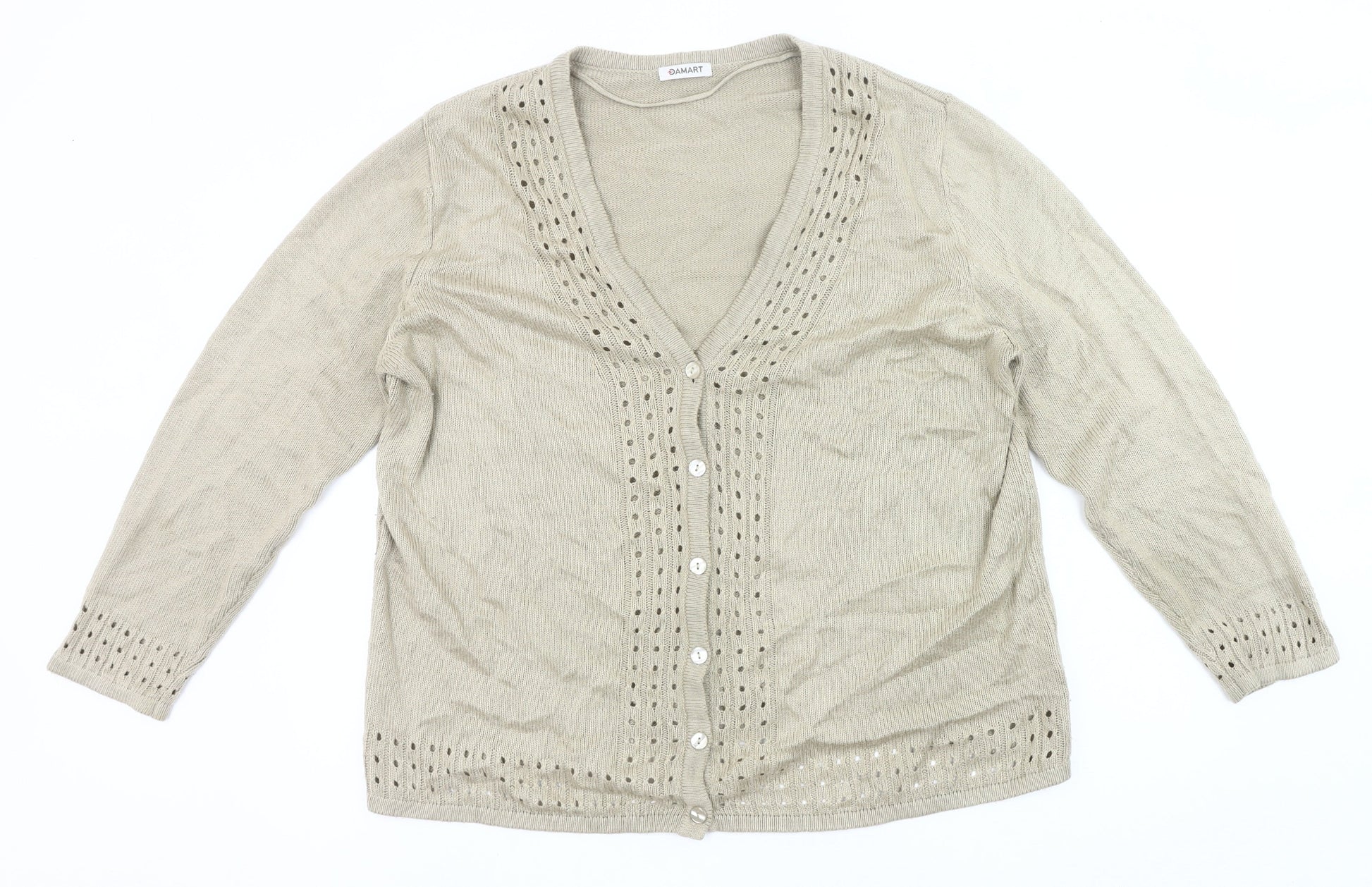 Damart Women’s Beige Cardigan Size 18 V-Neck Button Knit