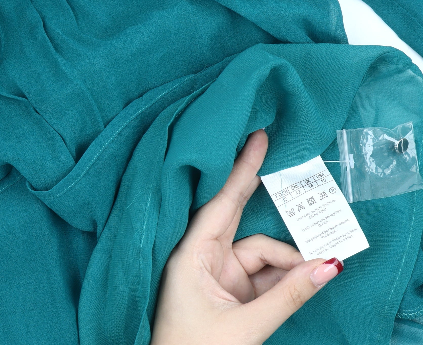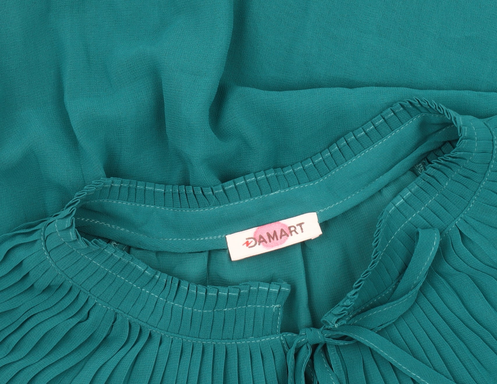 Damart Women’s Green Pleated Chiffon Tunic Blouse Size 14 Long Sleeve