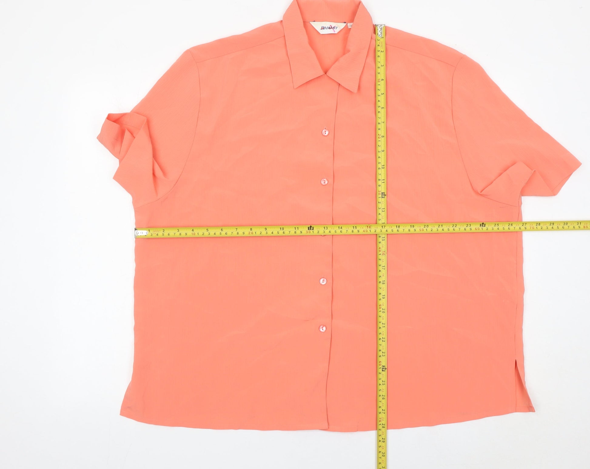 Damart Women’s Orange Short Sleeve Collared Button-Up Shirt Size 22