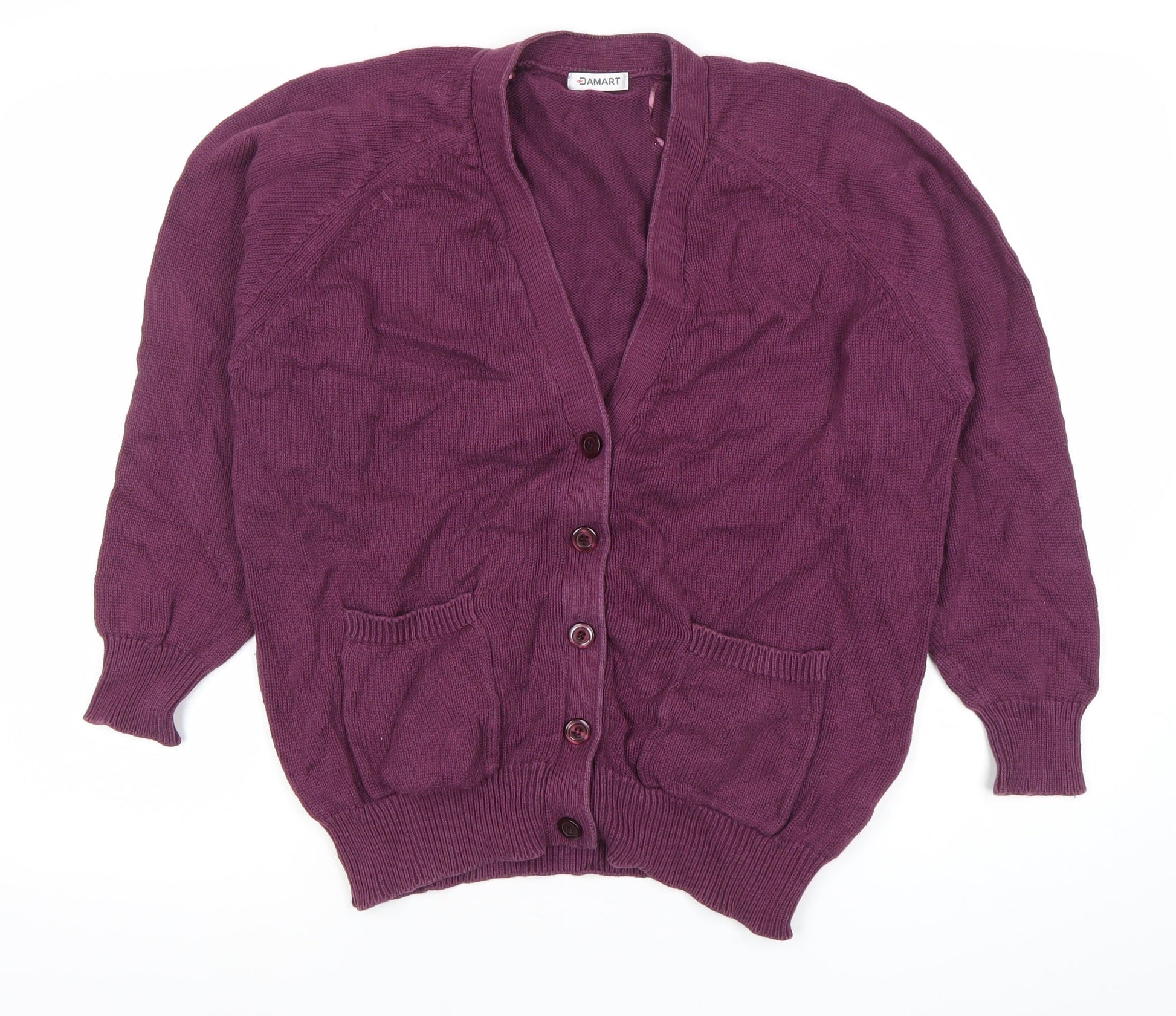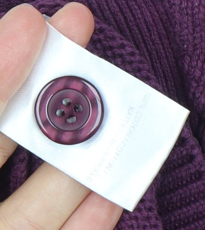 Damart Women’s Purple V-Neck Cardigan L Long Sleeve Cotton Blend