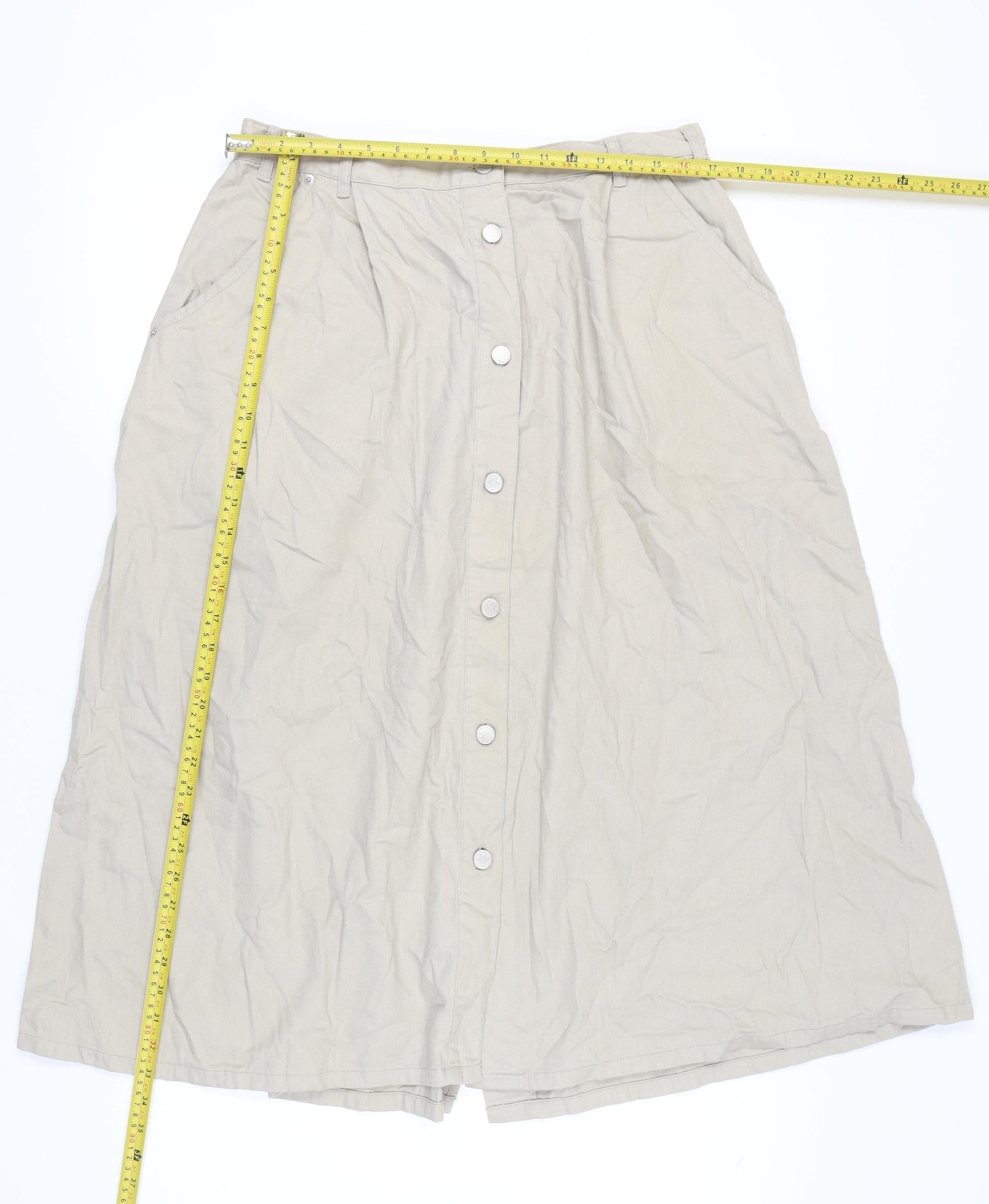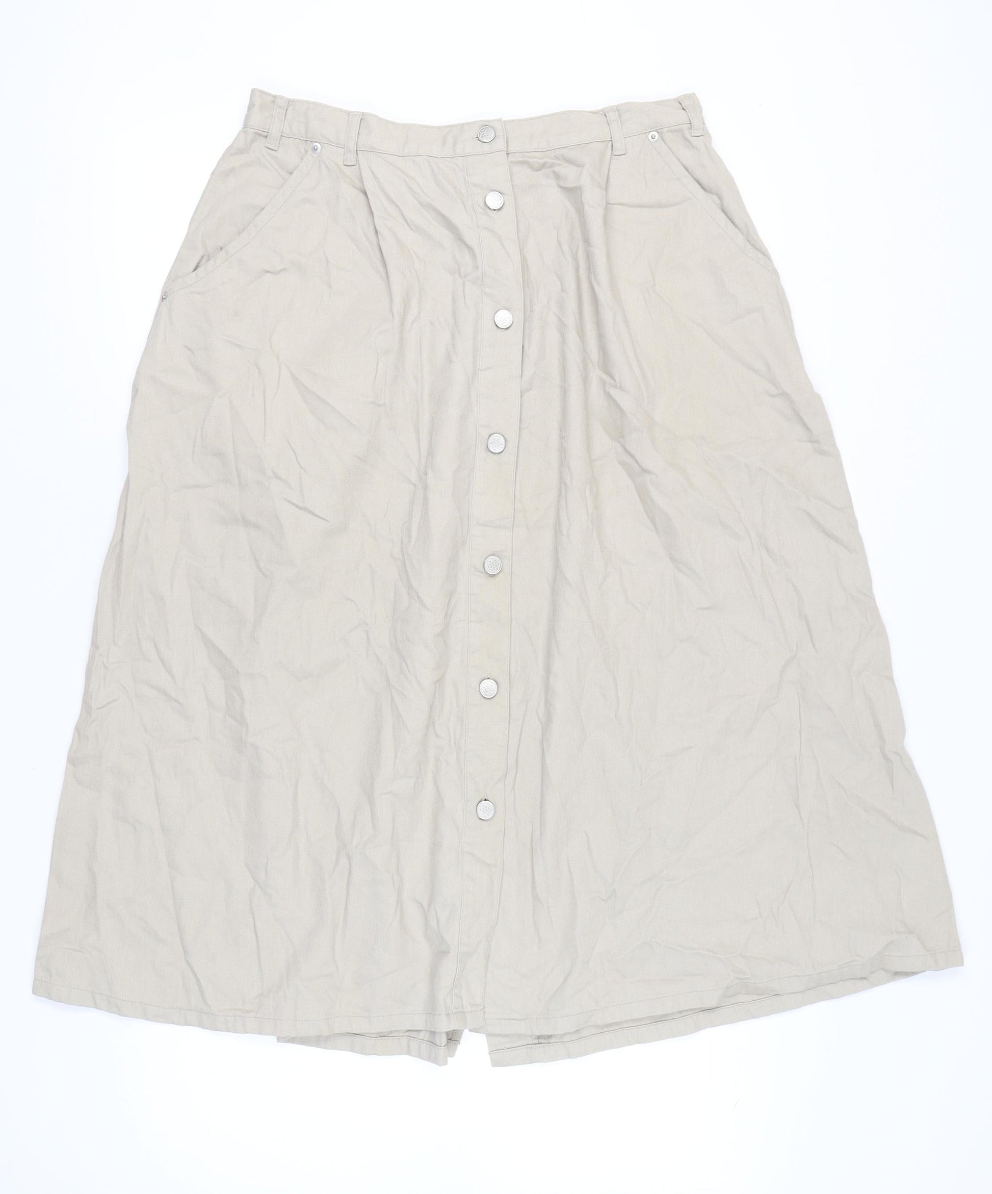 Damart Womens Beige A-Line Long Cotton Button Skirt Size 22