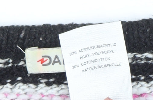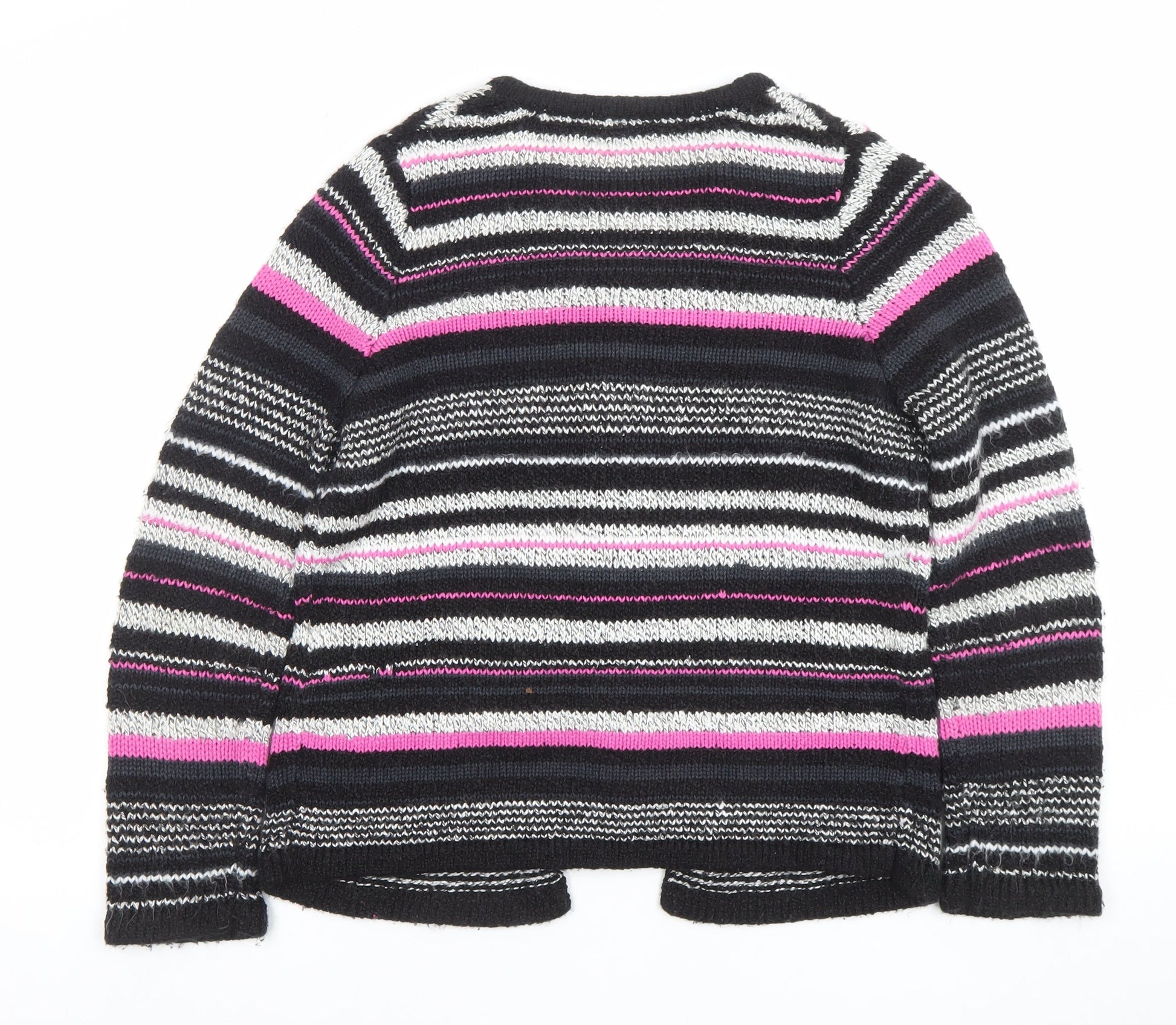 Damart Womens Black Pink Striped Cardigan Size S 10/12 Acrylic Cotton Knit