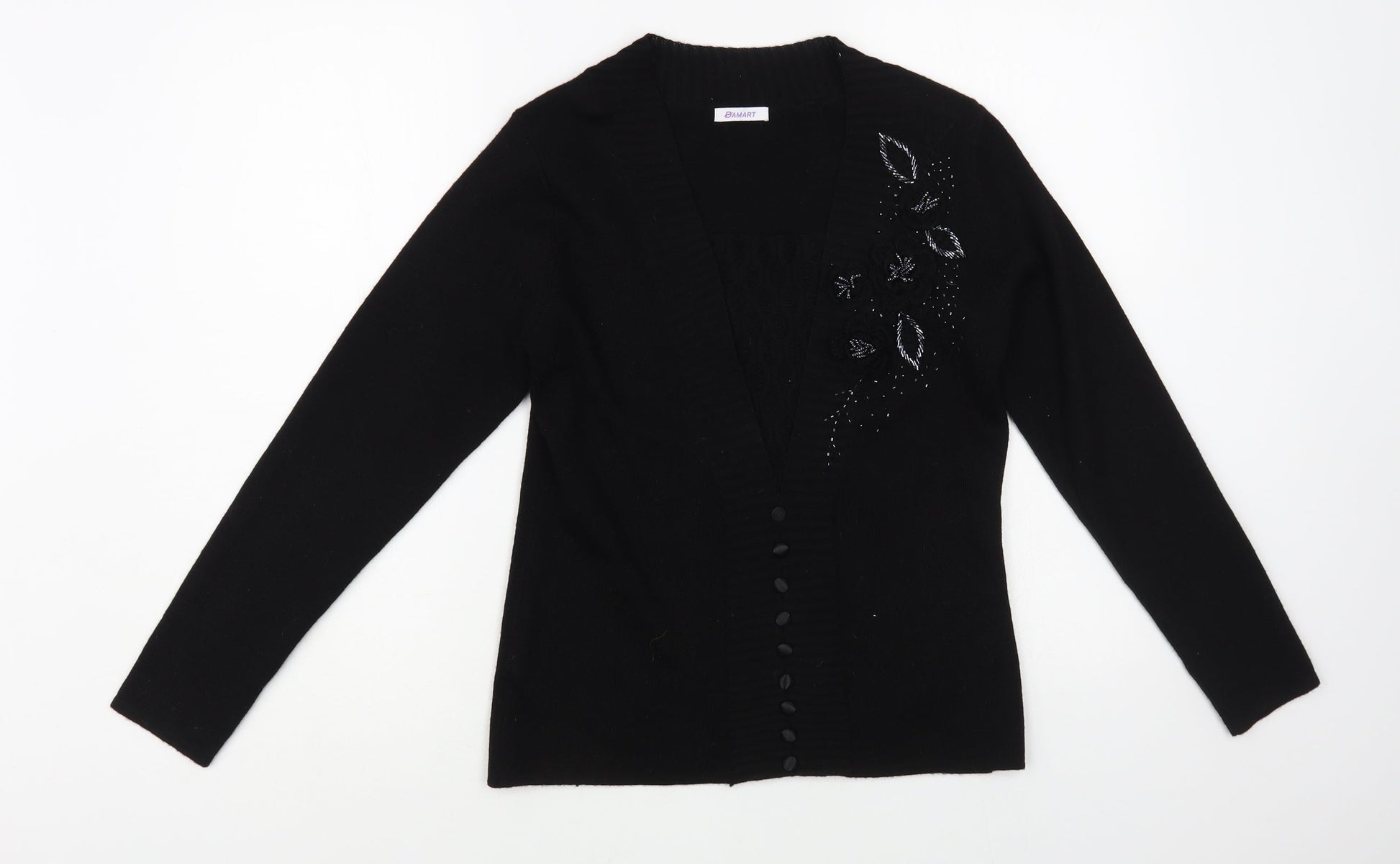Damart Womens Black Square Neck Acrylic Cardigan Jumper Size 10
