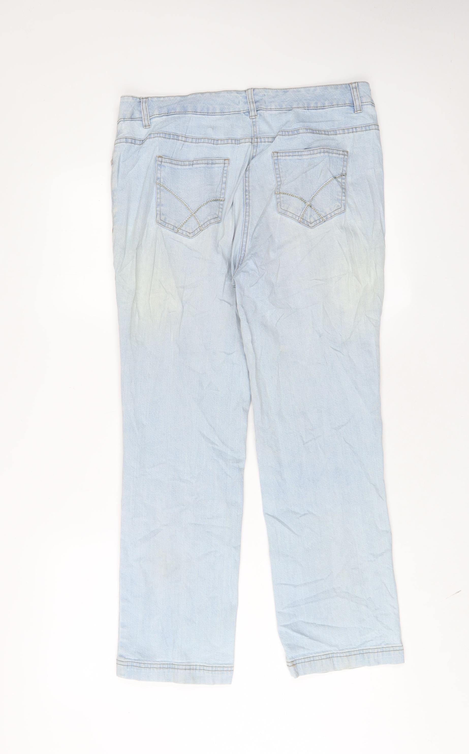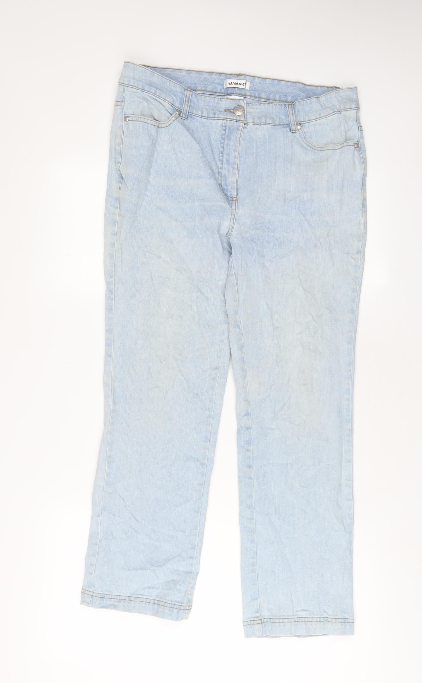 Damart Womens Blue Cotton Straight Jeans Size 14 L27 in Regular Zip