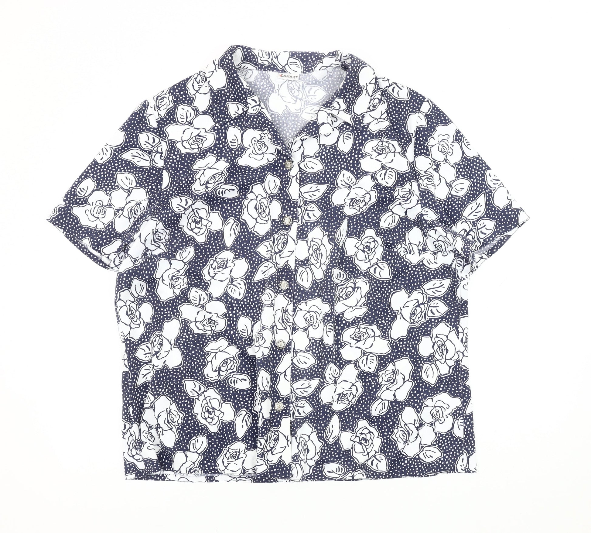 Damart Women's Blue Floral Button-Up Shirt Size 20