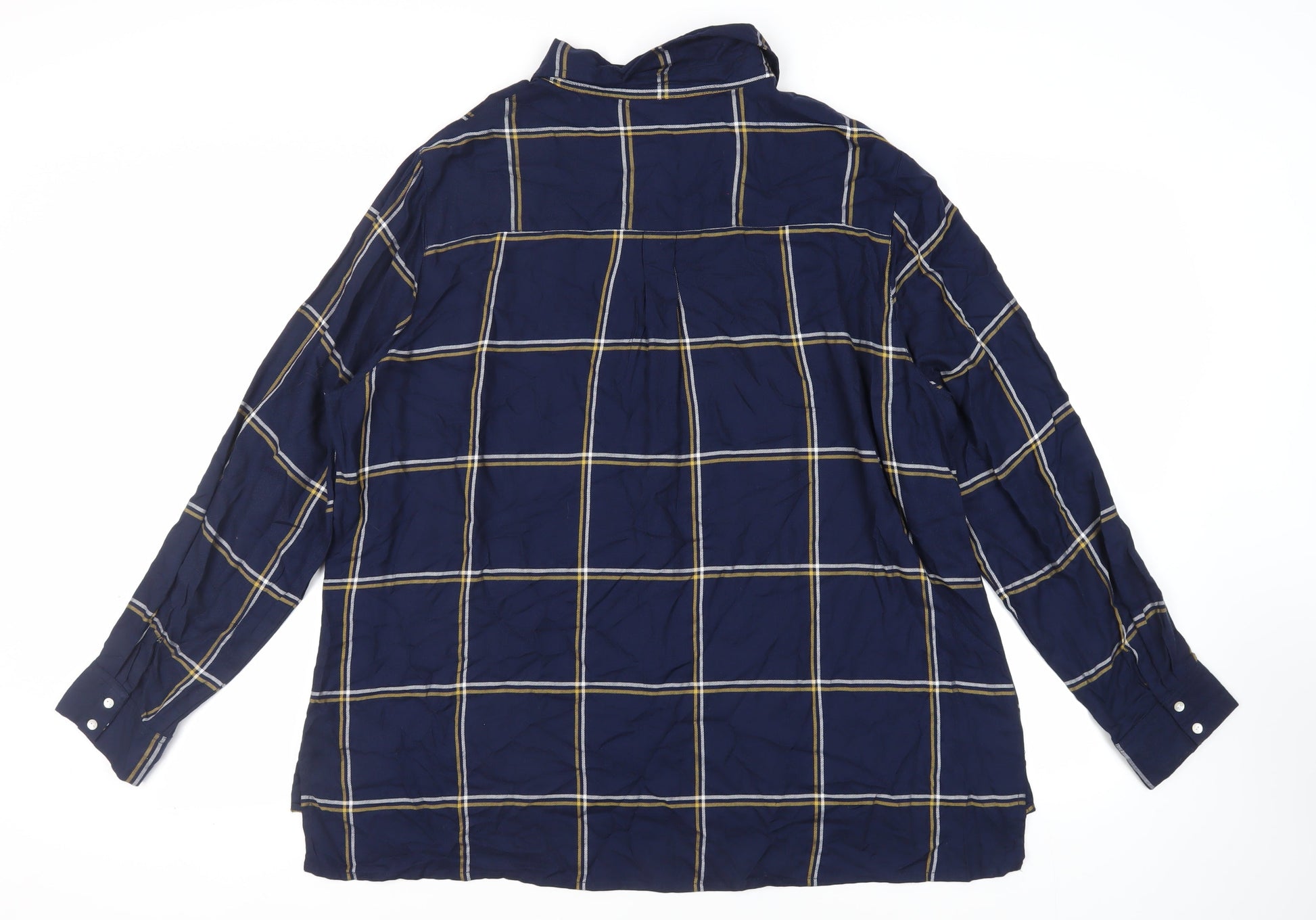 Damart Womens Blue Plaid Viscose Basic Button-Up Size 24 Collared