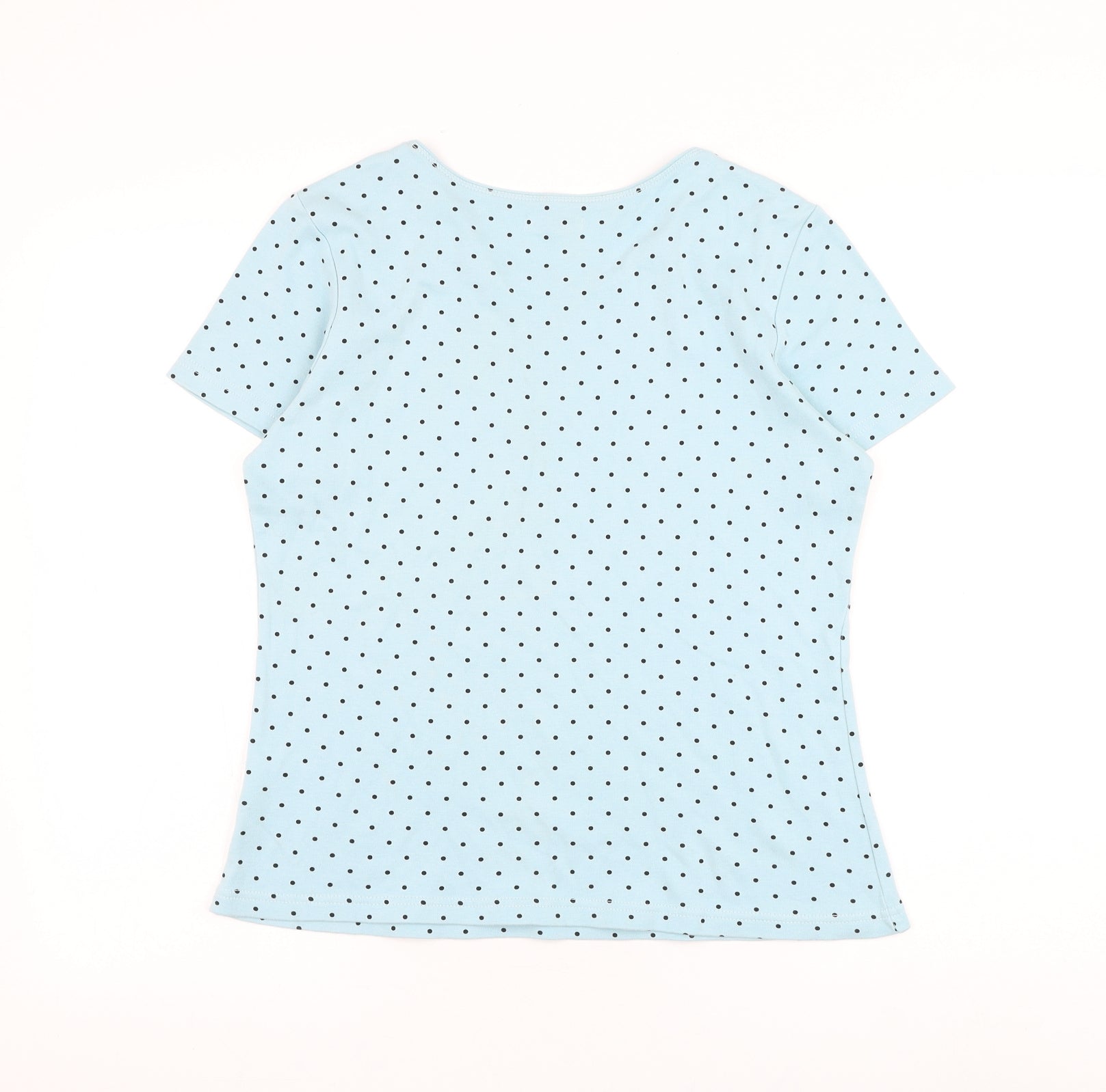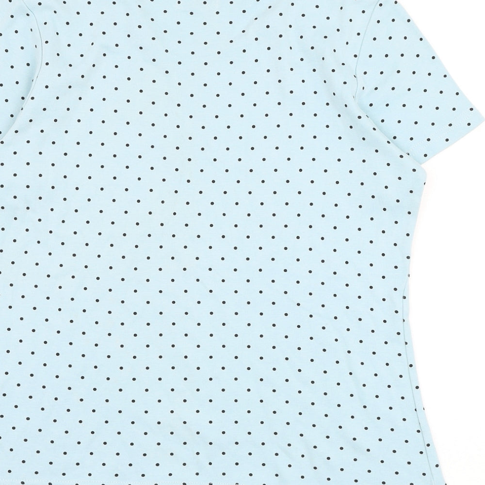 Damart Womens Blue Polka Dot Cotton Basic T-Shirt Size 10 Round Neck