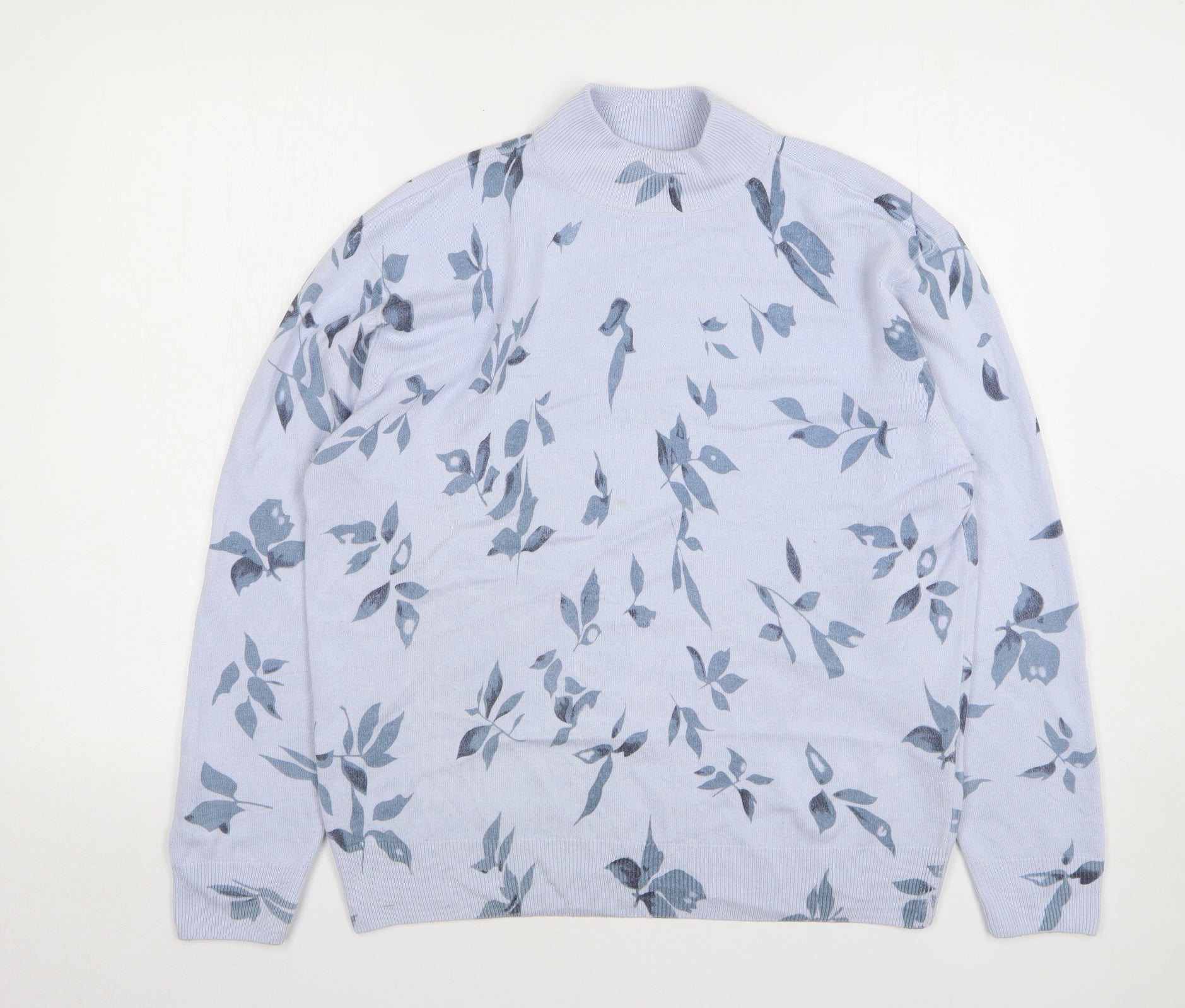 Damart Womens Blue Round Neck Floral Acrylic Pullover Jumper Size 12