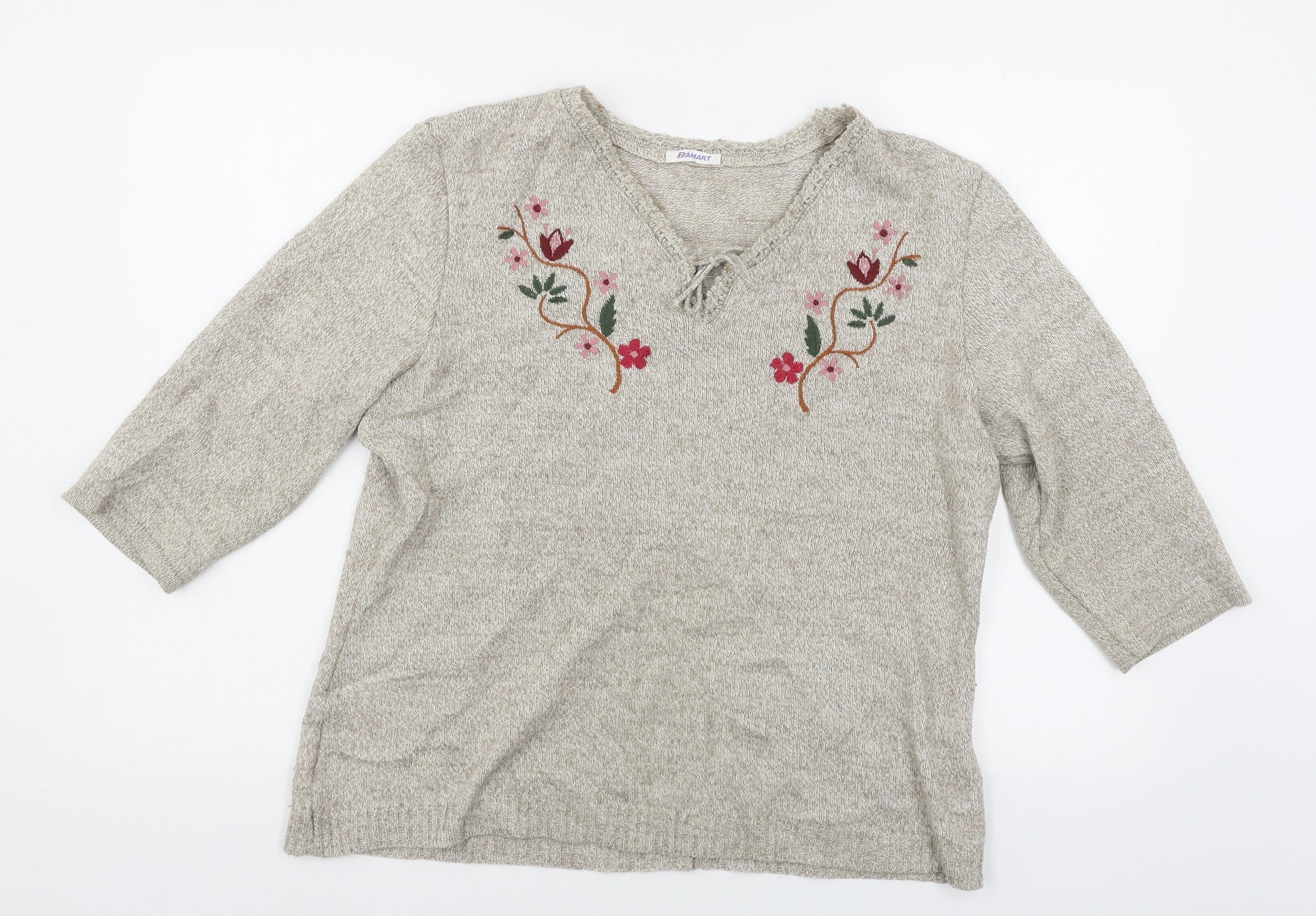 Damart Womens Brown Floral Knit Pullover Jumper Size 14