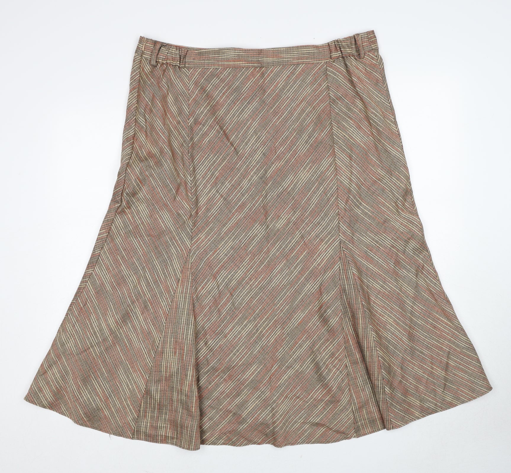 Damart Womens Brown Geometric Polyester Swing Skirt Size 20 Zip