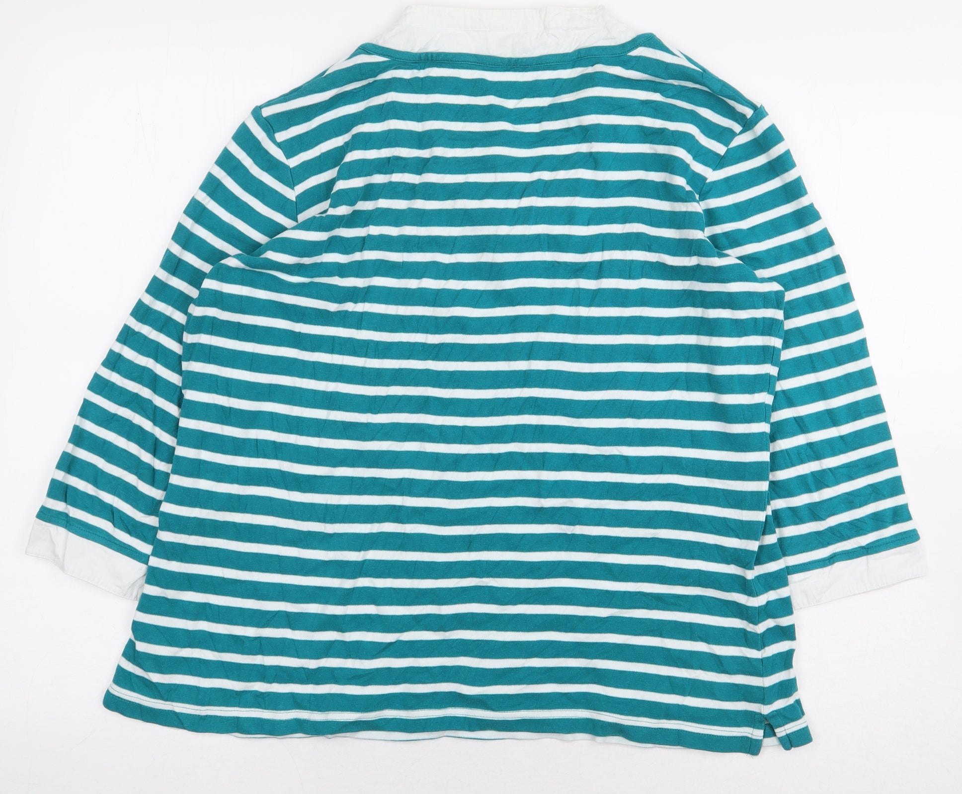 Damart Womens Green Striped Cotton Basic Blouse Size L V-Neck