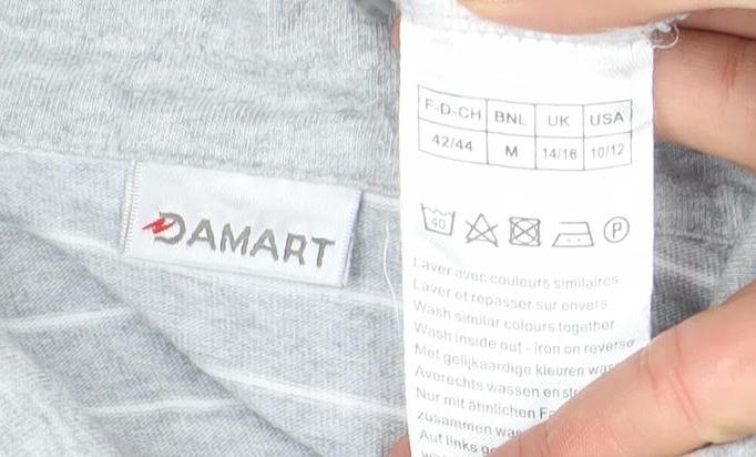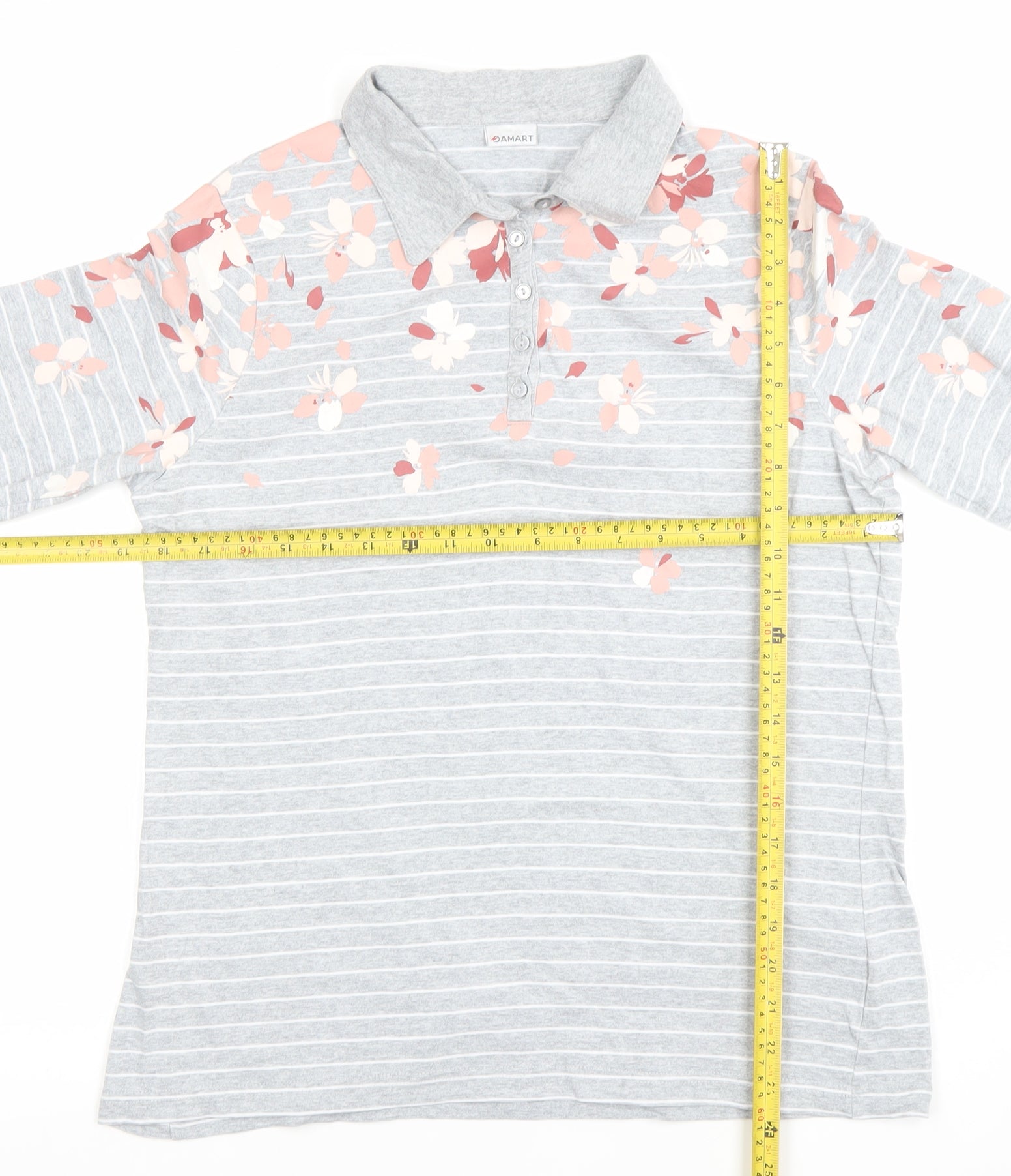 Damart Women's Grey Floral Striped Long Sleeve Cotton Polo Shirt M
