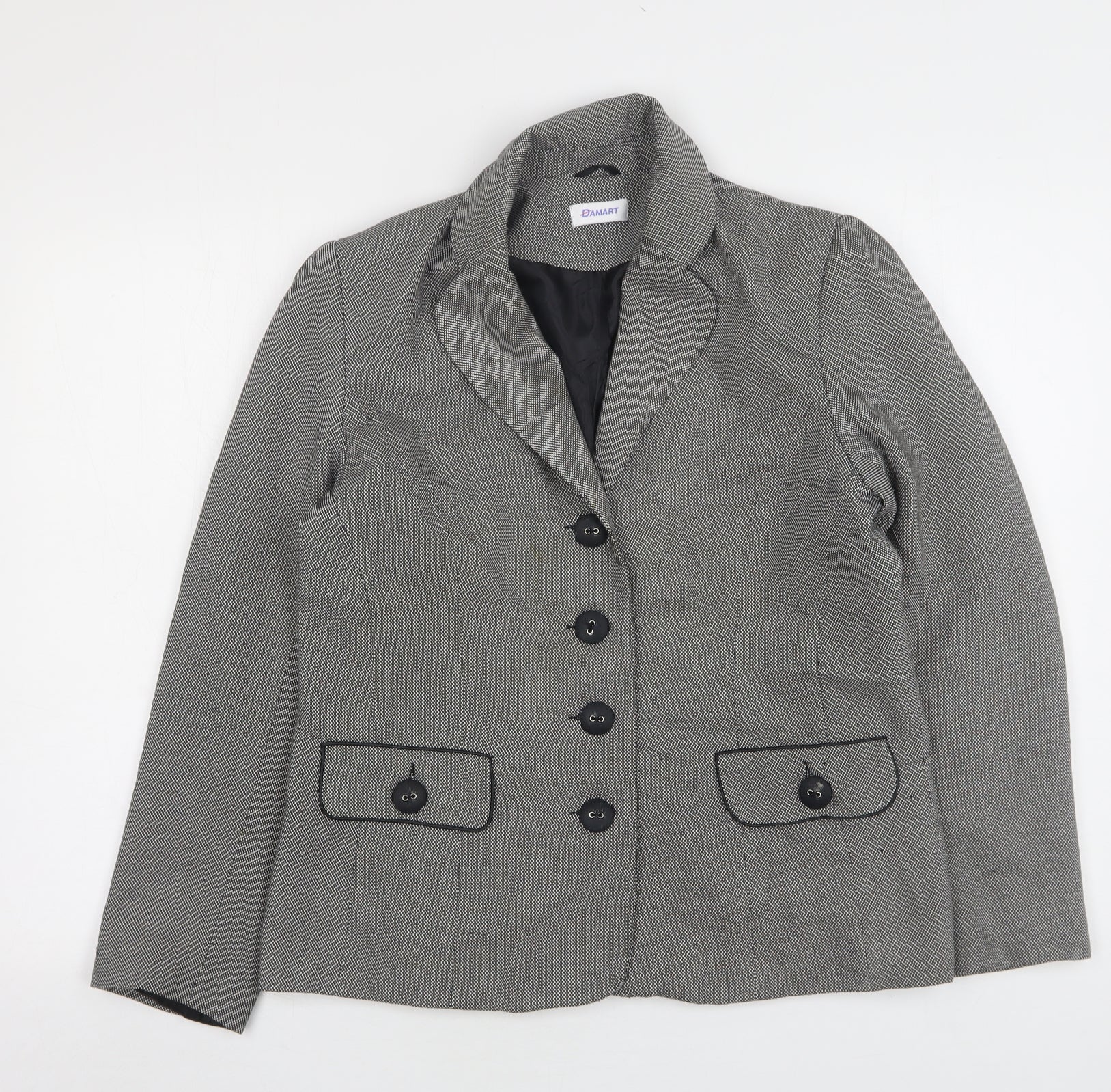 Damart Womens Grey Geometric Viscose Jacket Blazer Size 12
