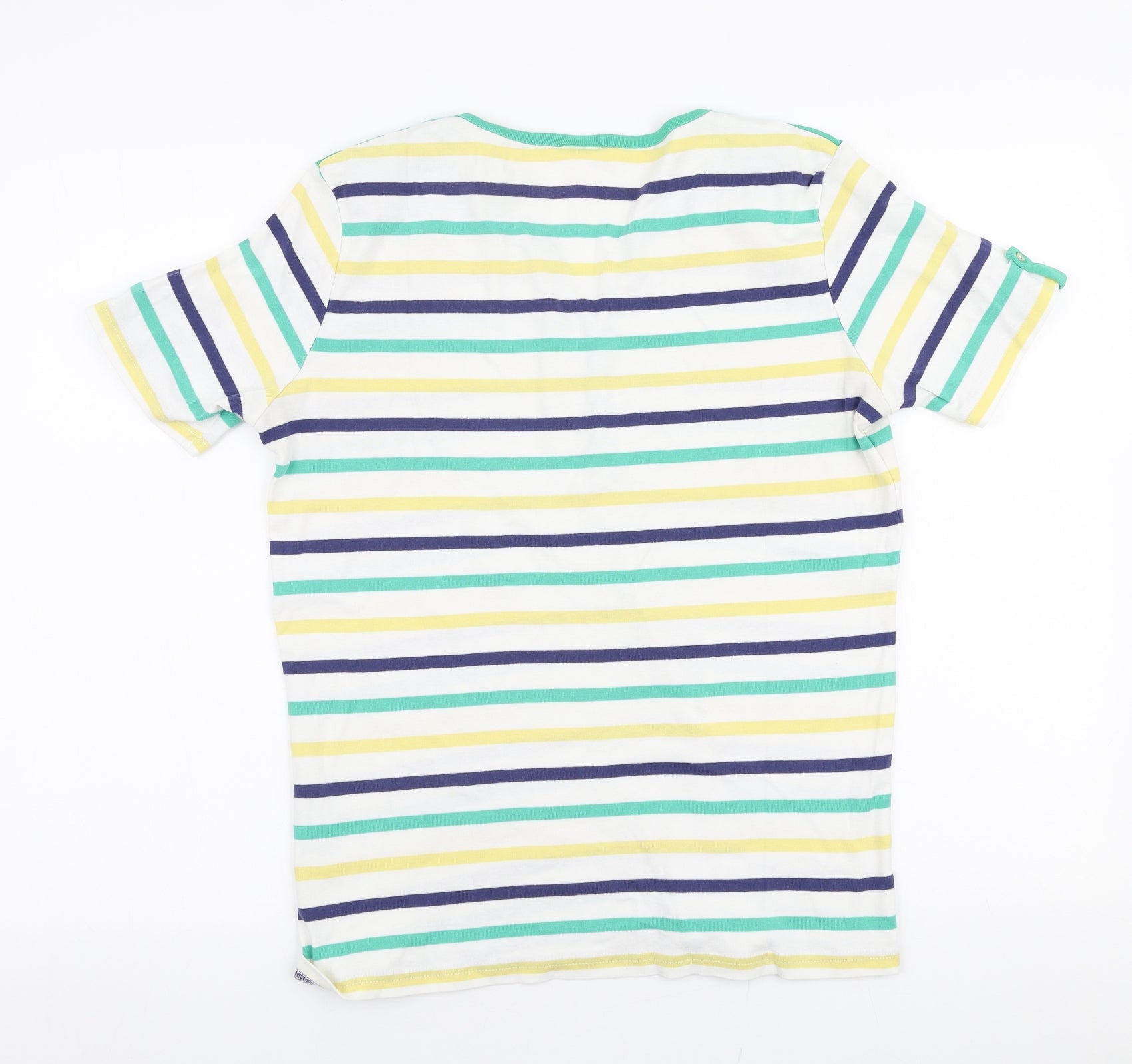Damart Womens Multicoloured Striped 100% Cotton Jersey T-Shirt Size 14 Round Neck