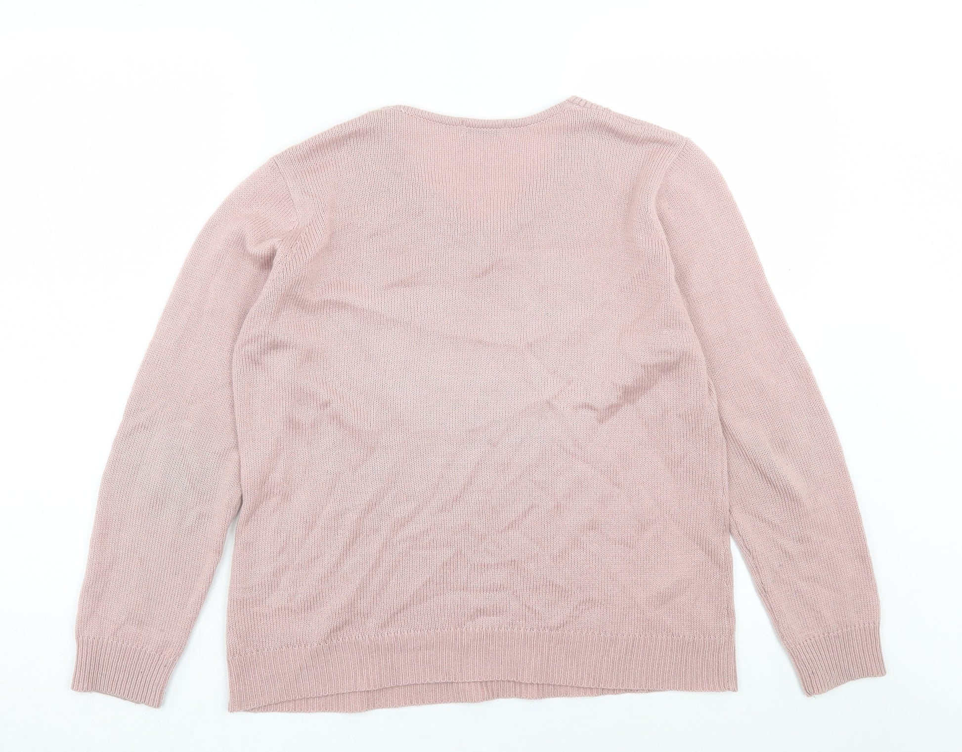 Damart Womens Pink V-Neck Acrylic Pullover Jumper Size 14