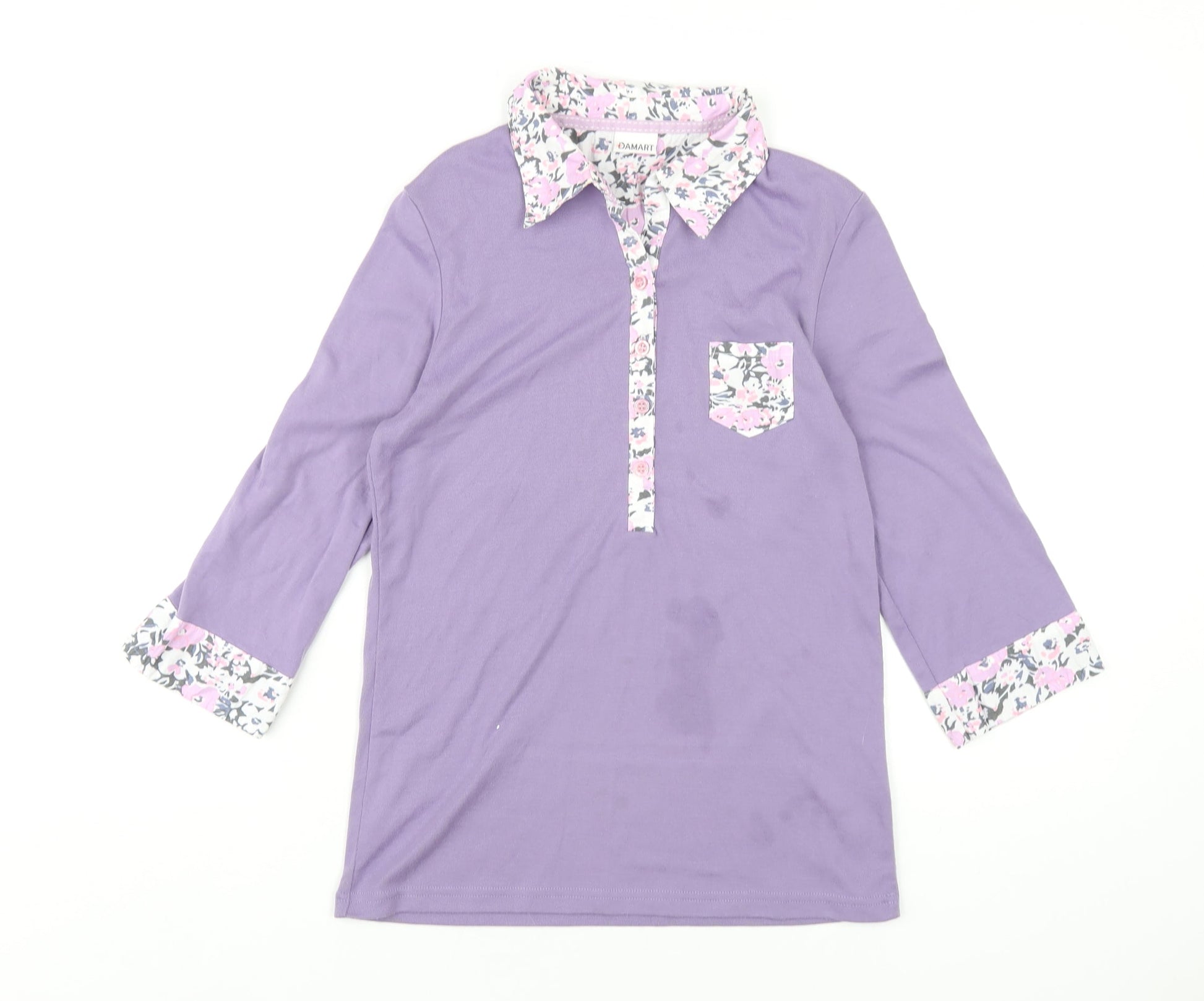 Damart Womens Purple Fair Isle Polyester Basic T-Shirt Size 10 Collared