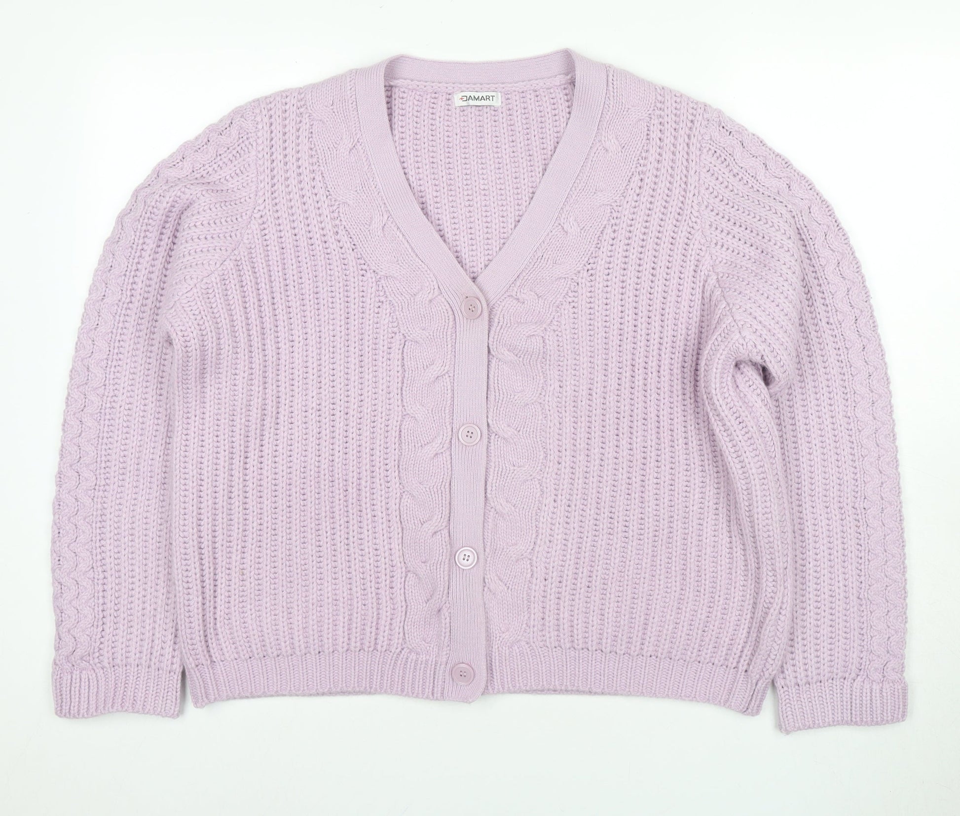 Damart Women's Purple V-Neck Cable-Knit Cardigan