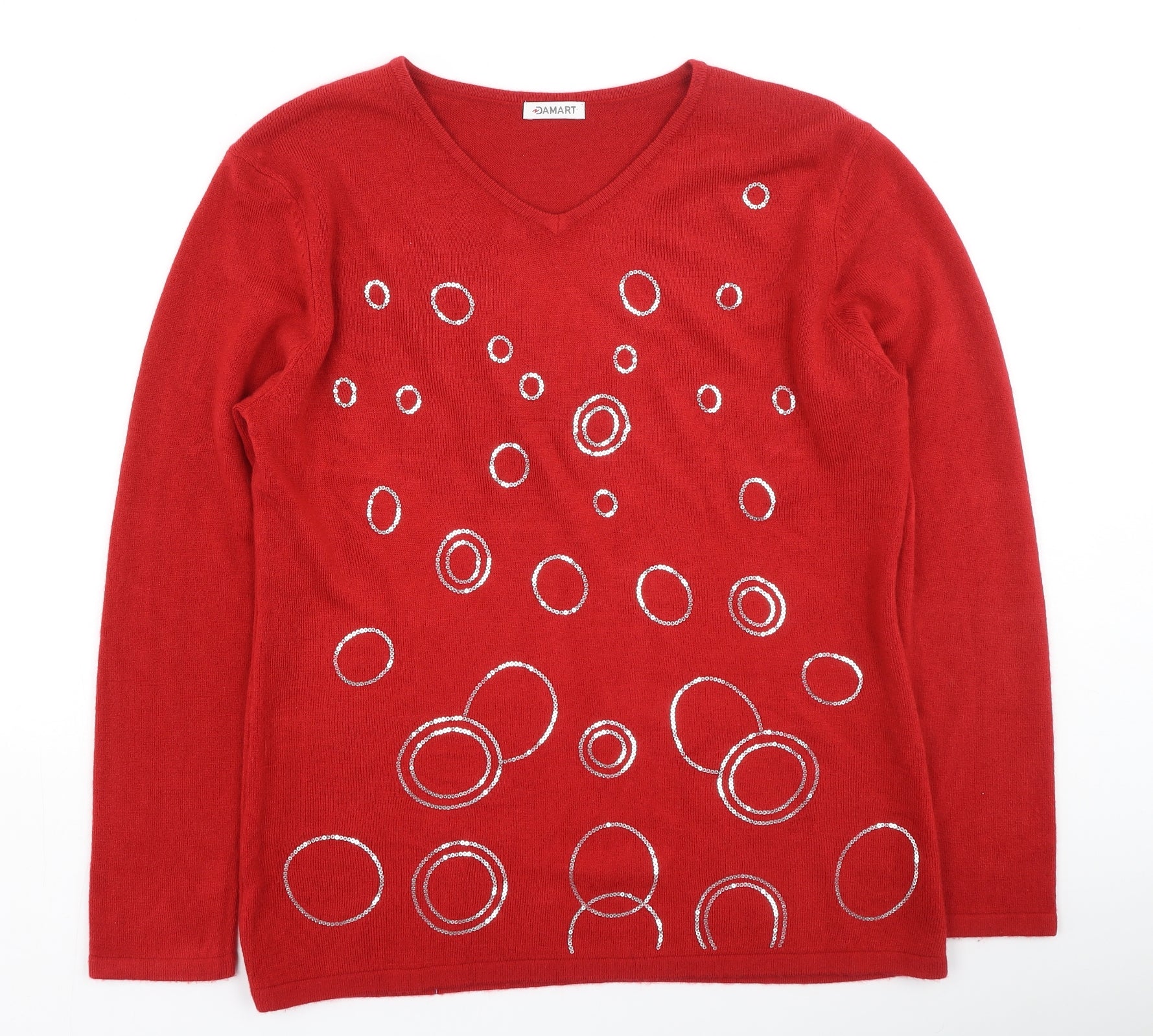 Damart Womens Red Round Neck Acrylic Pullover Jumper Size 14