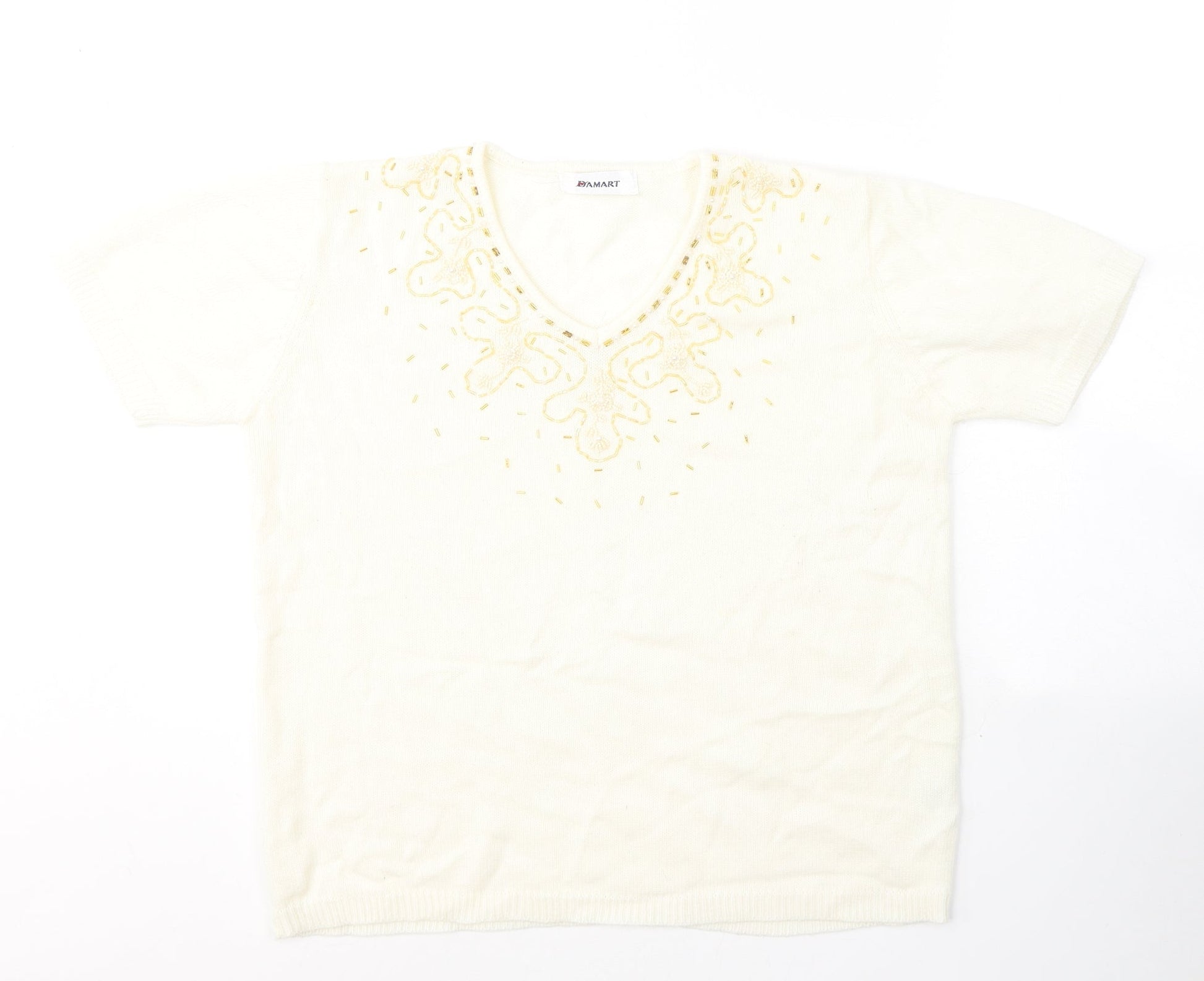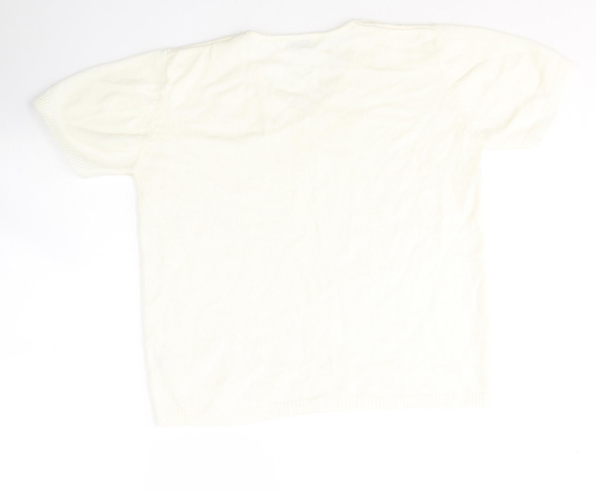 Damart Womens White Acrylic Jersey T-Shirt Size 12 V-Neck