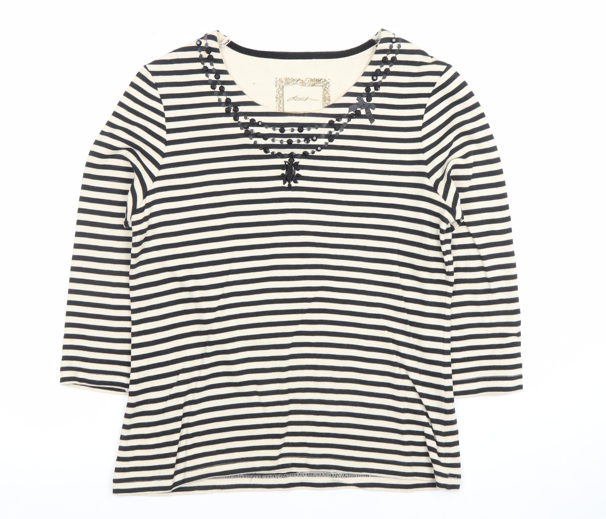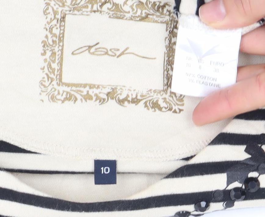 Dash Women’s Black Stripe 3/4 Sleeve Cotton T-Shirt Size 10