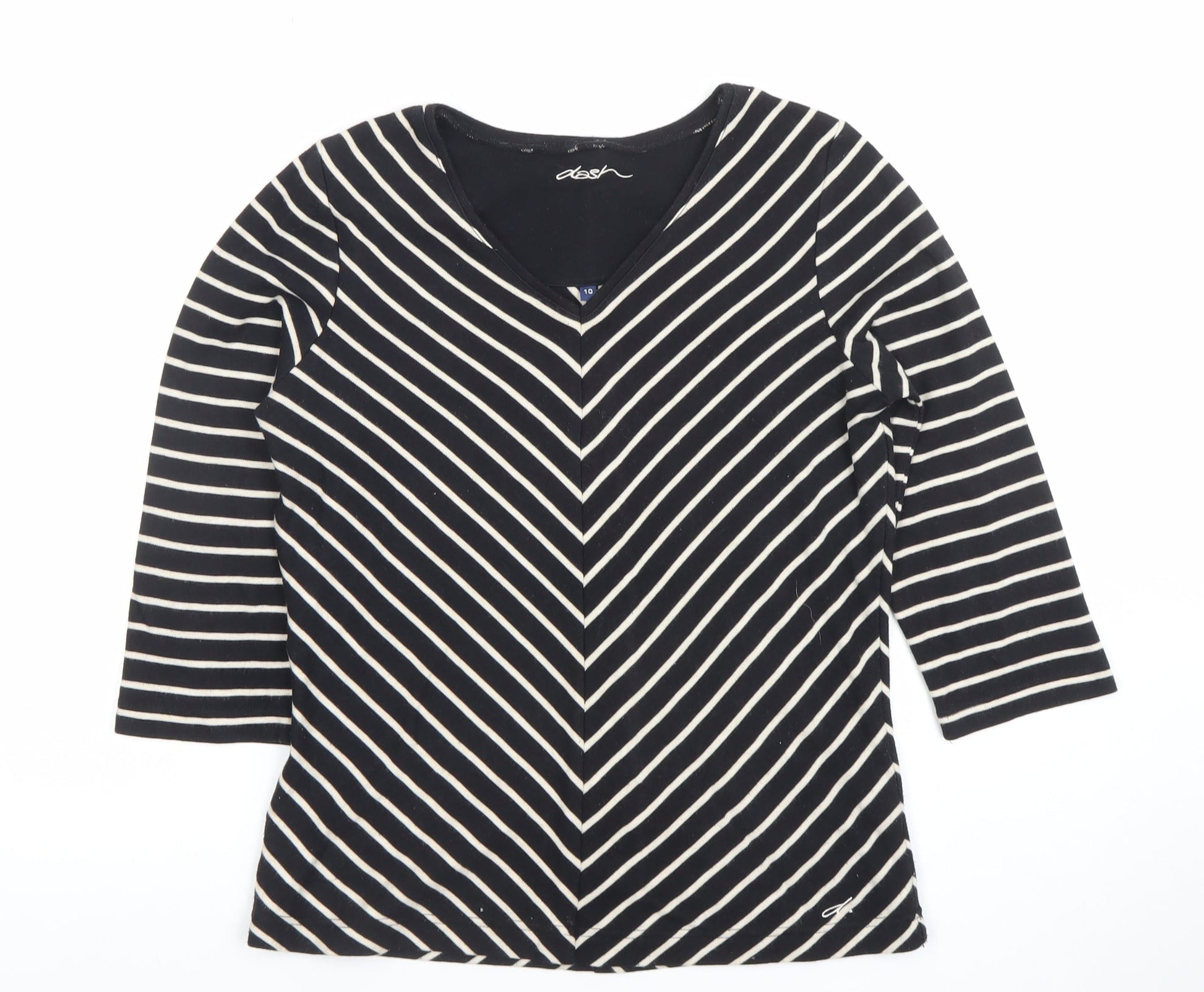 Dash Women’s Black Striped V-Neck 3/4 Sleeve Jersey Top Size 10