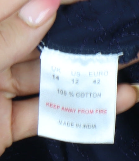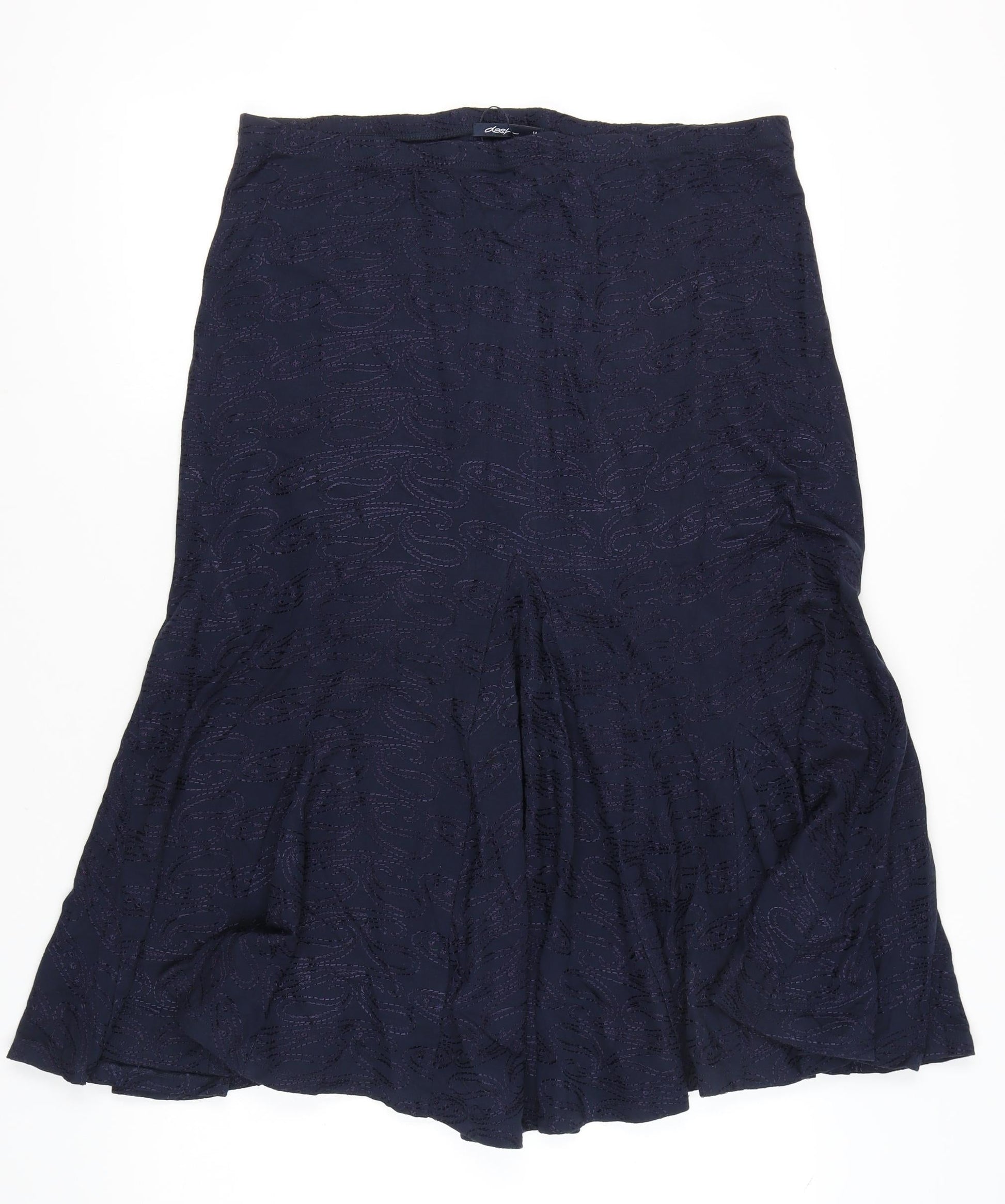 Dash Women’s Blue Midi Flare Skirt Size 14 Cotton Embroidered