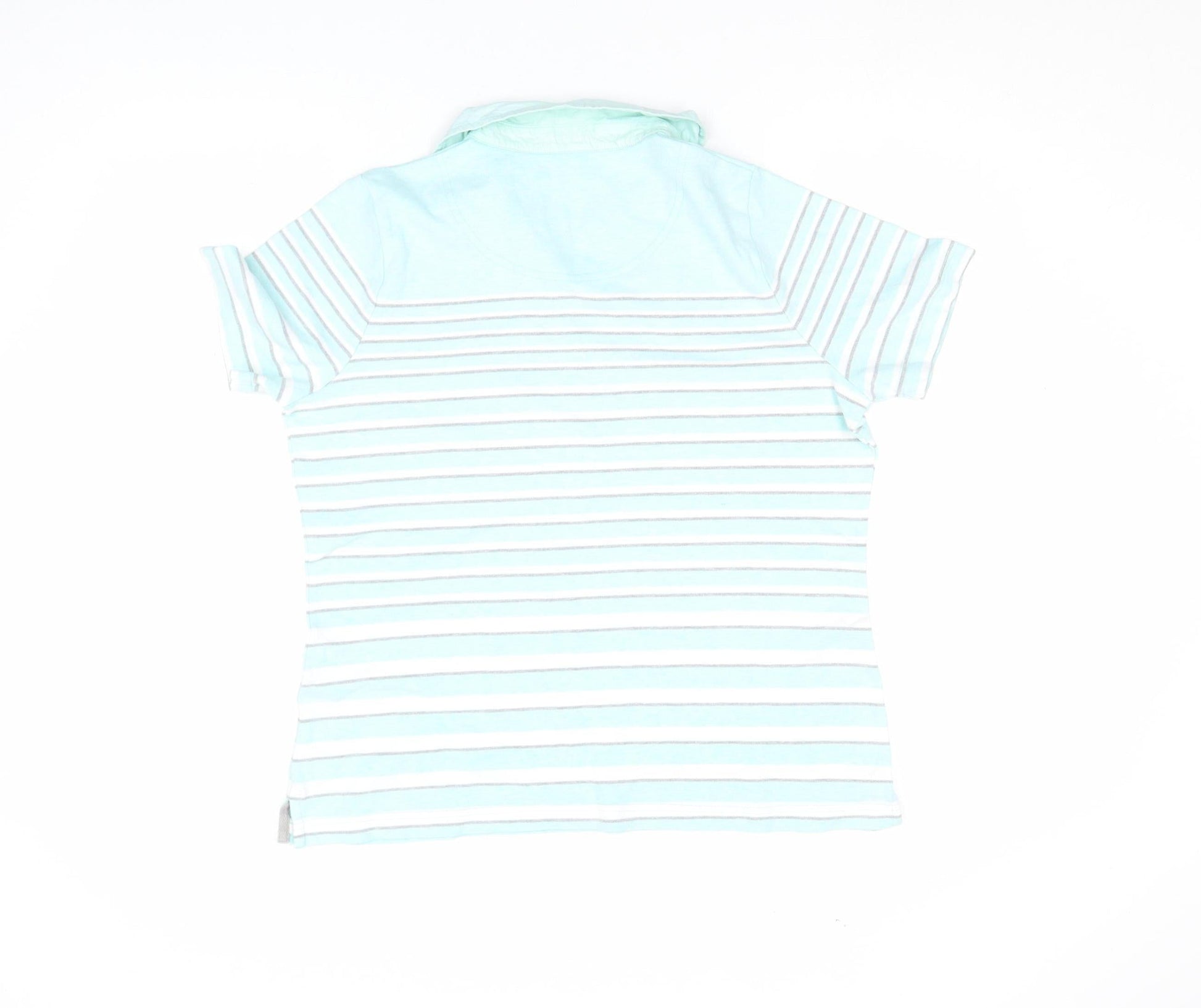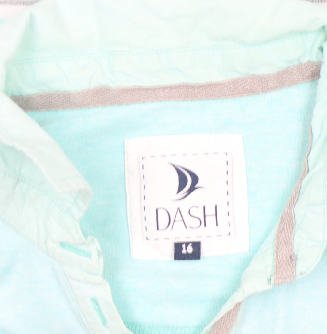 DASH Women’s Blue Striped Polo Shirt Size 16 Cotton Short Sleeve