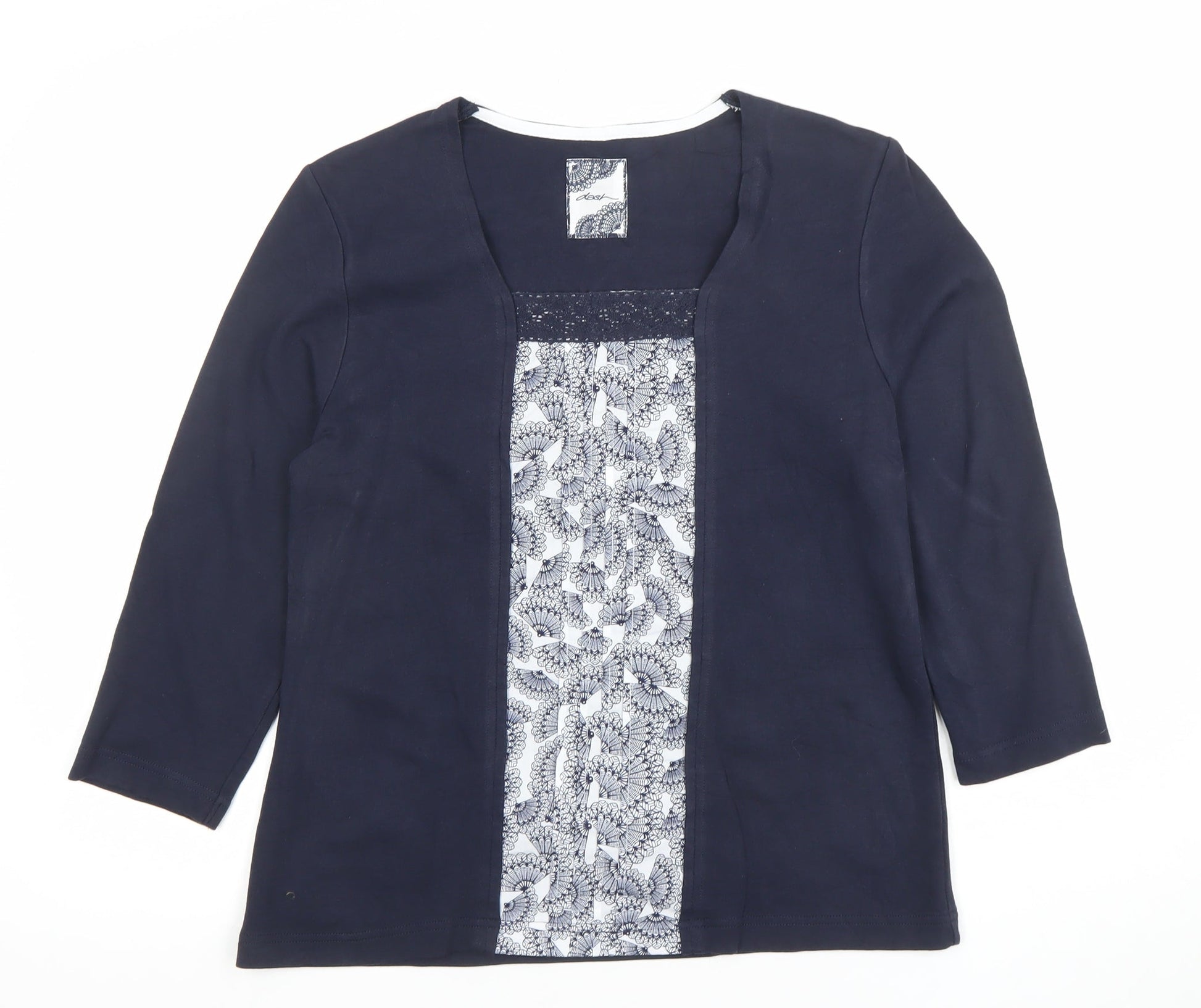 Dash Womens Blue Floral Panel 3/4 Sleeve Tunic Blouse Size 14