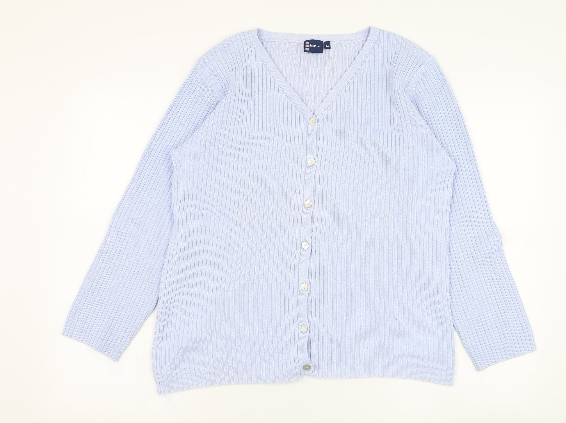 DASH Womens Blue V-Neck Polyester Cardigan Jumper Size 14