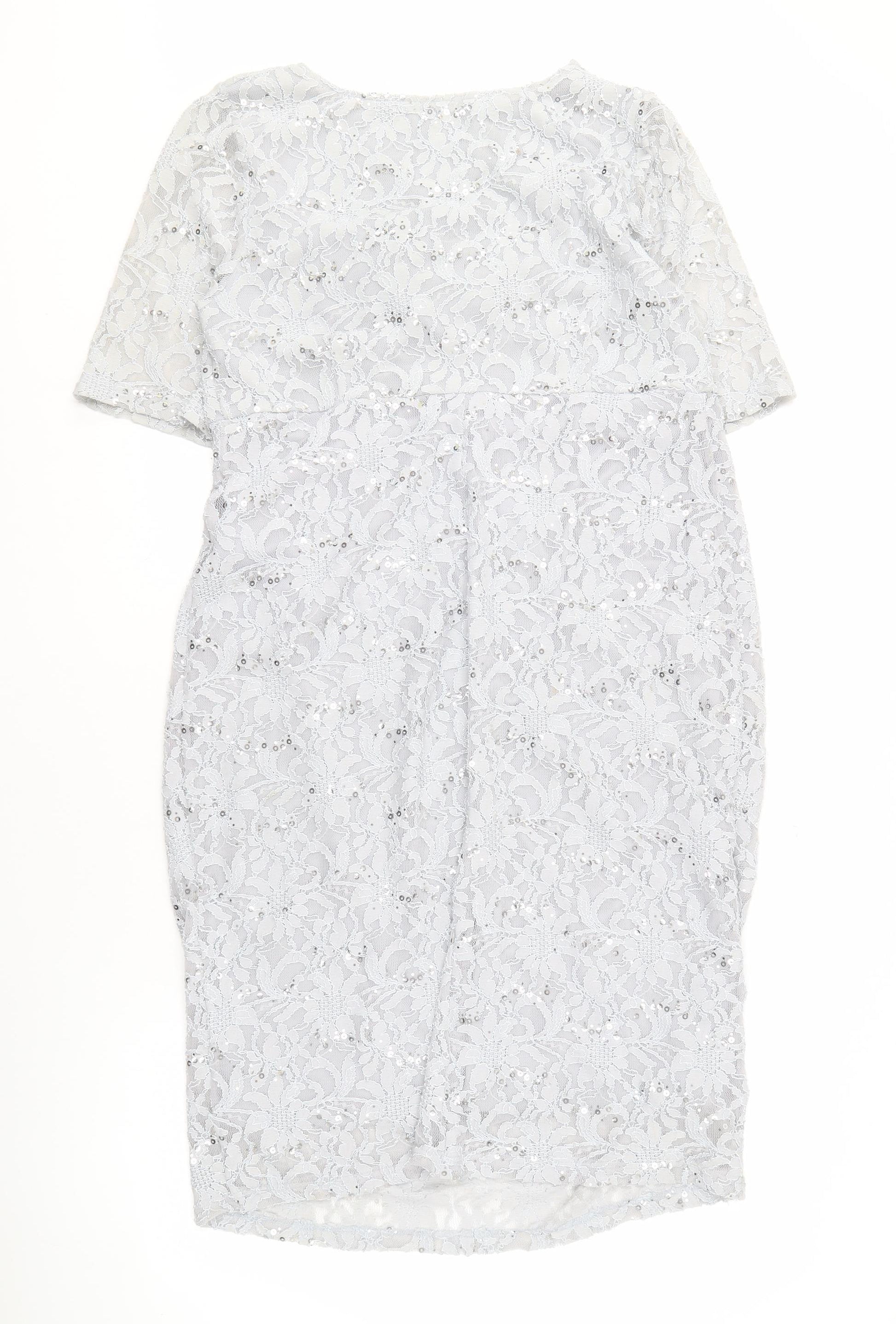 David Emanuel Grey Lace Dress with Sequins Size 18