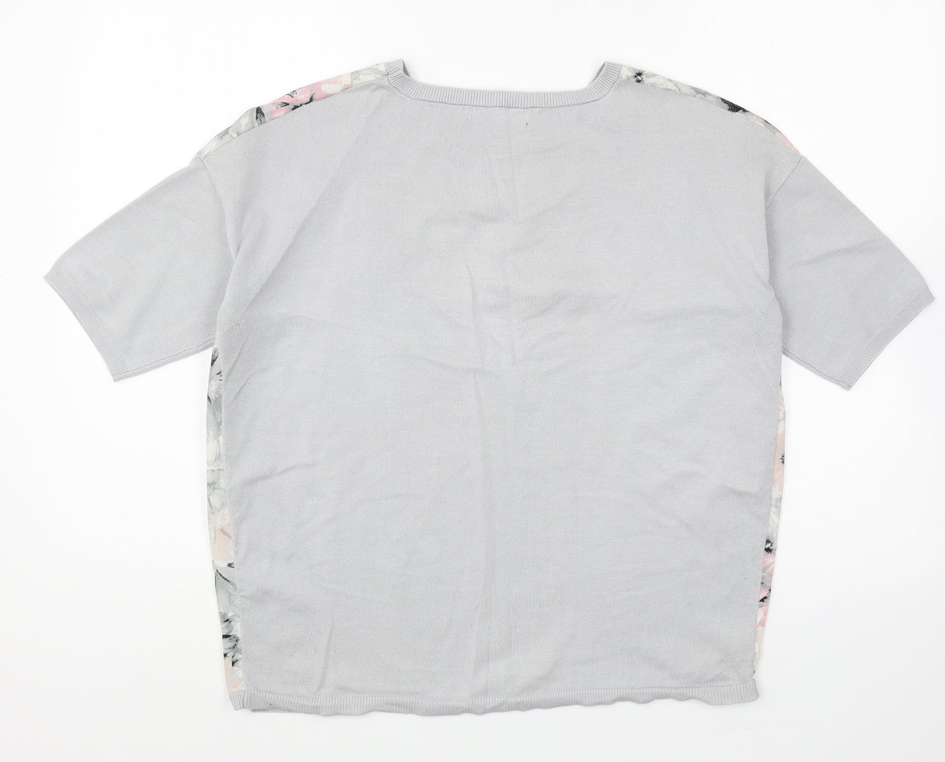 David Emanuel Womens Grey Round Neck Floral Polyester Pullover Jumper Size S