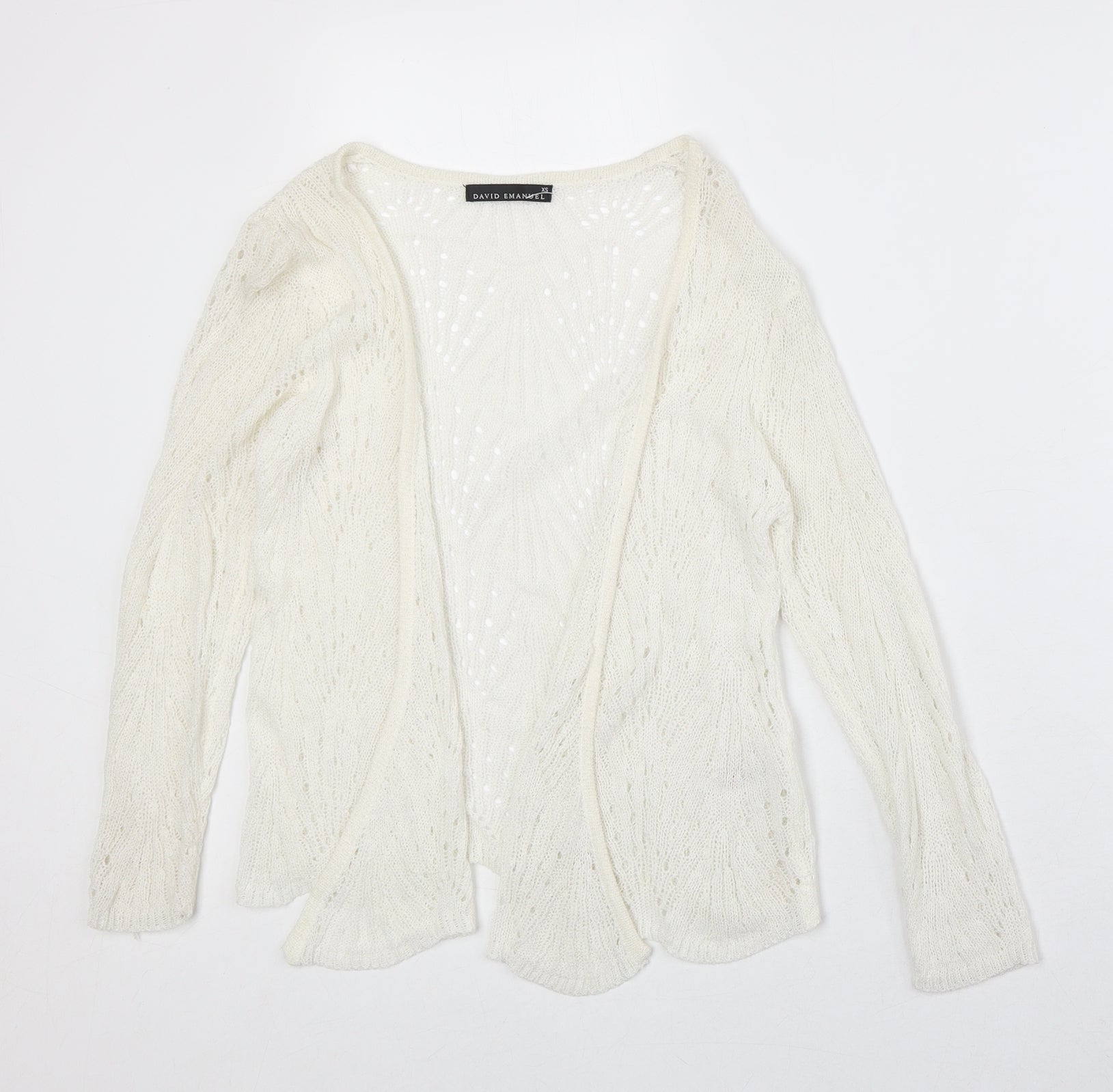David Emanuel Womens Ivory V-Neck Acrylic Cardigan Jumper Size XS