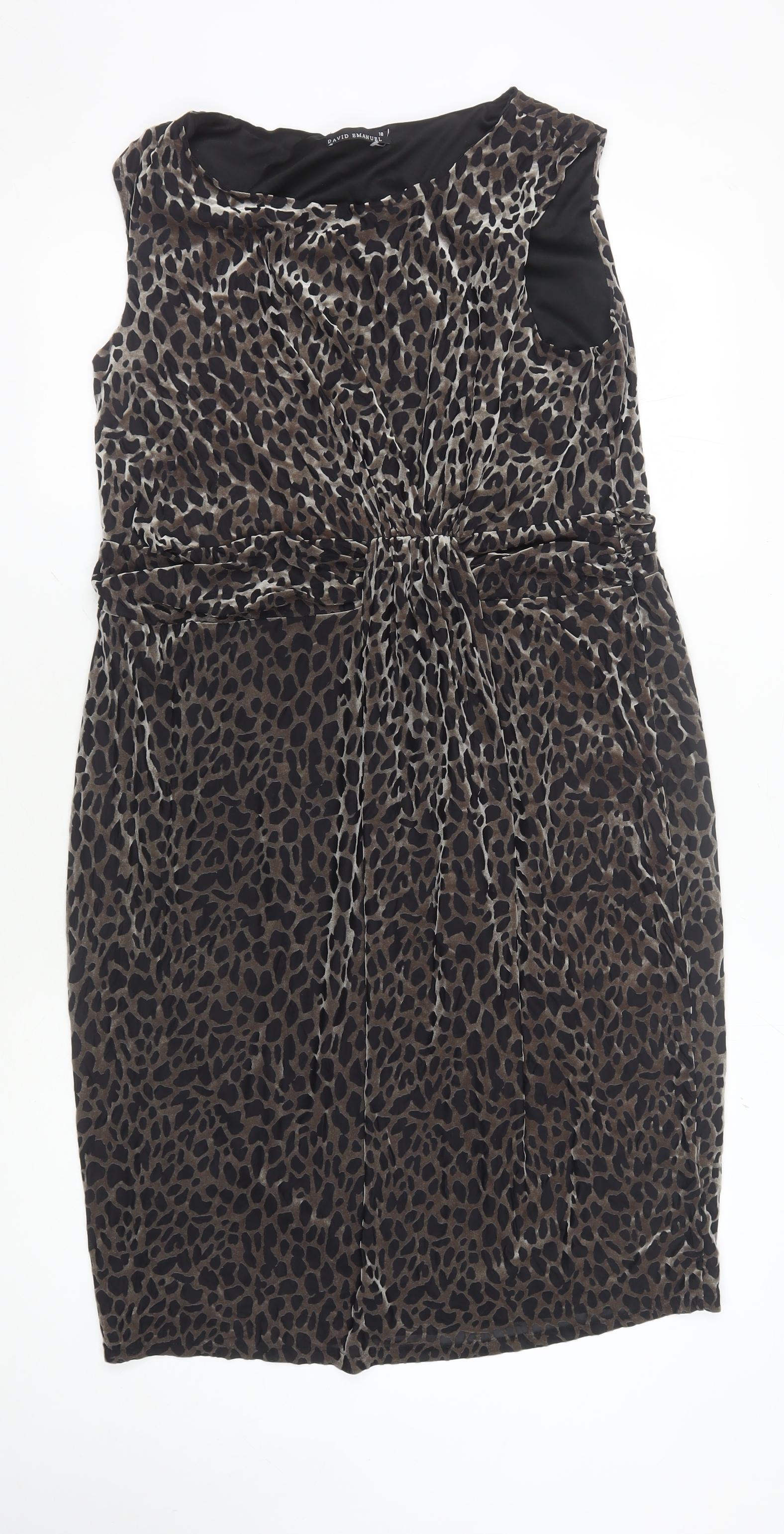 David Emanuel Women's Sheath Dress Brown Animal Print 18