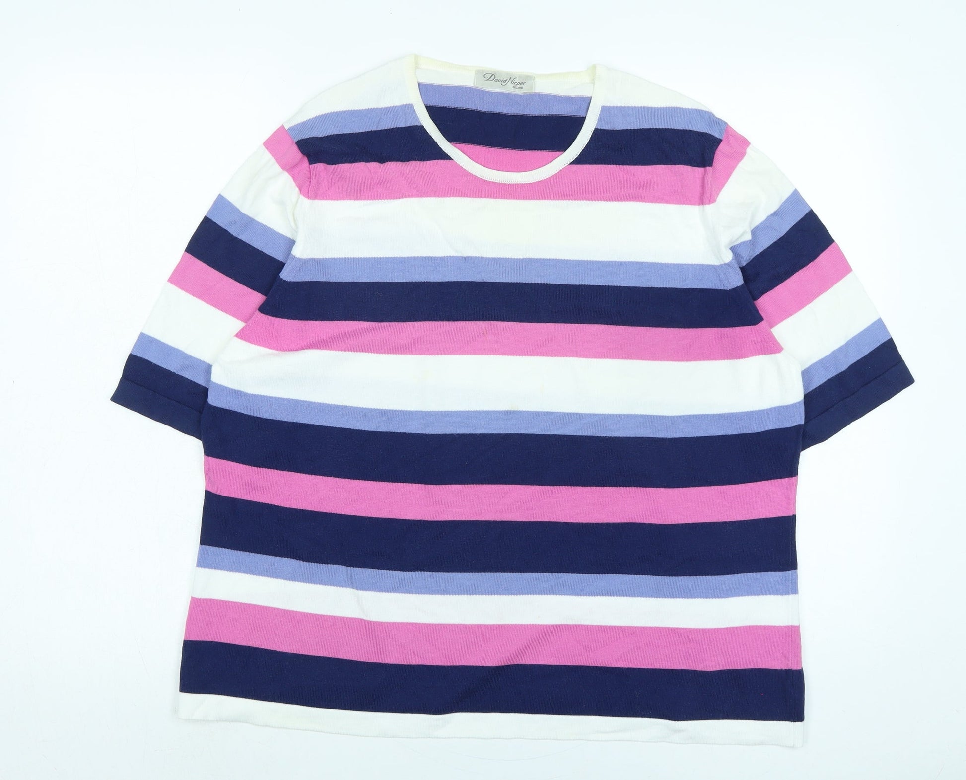 David Nieper Womens Multicoloured Crew Neck Striped Cotton Pullover Jumper Size 20