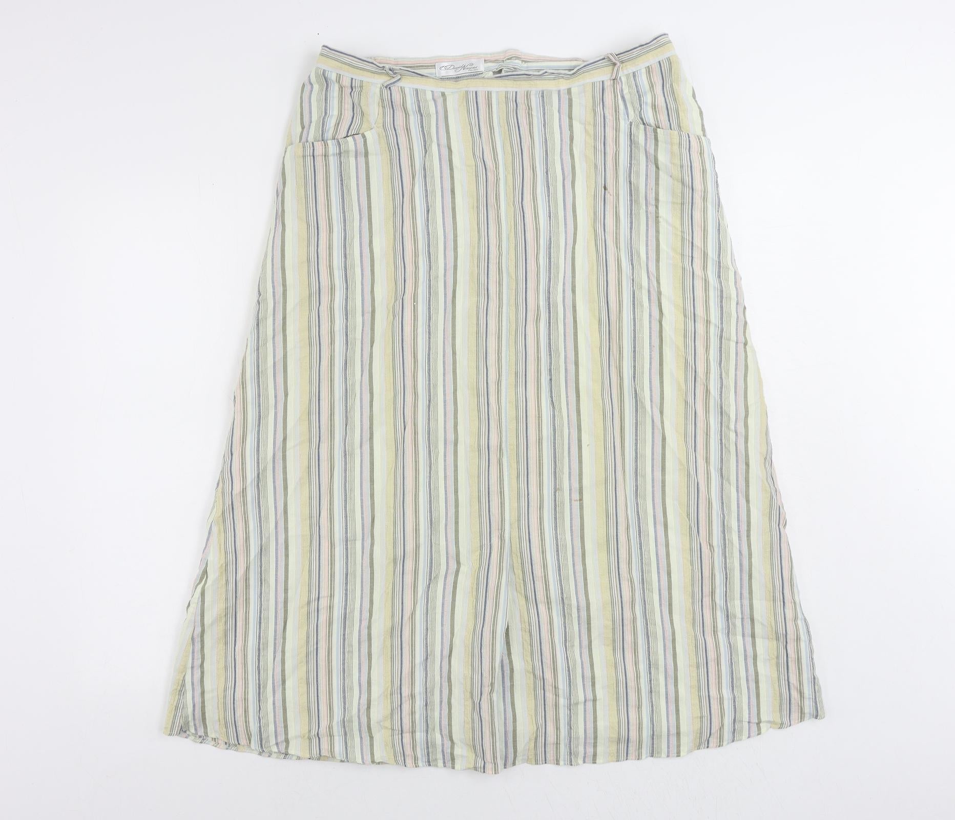 David Nieper Womens Multicoloured Striped Cotton A-Line Skirt Size 16 Zip - Vintage Elastic Waist