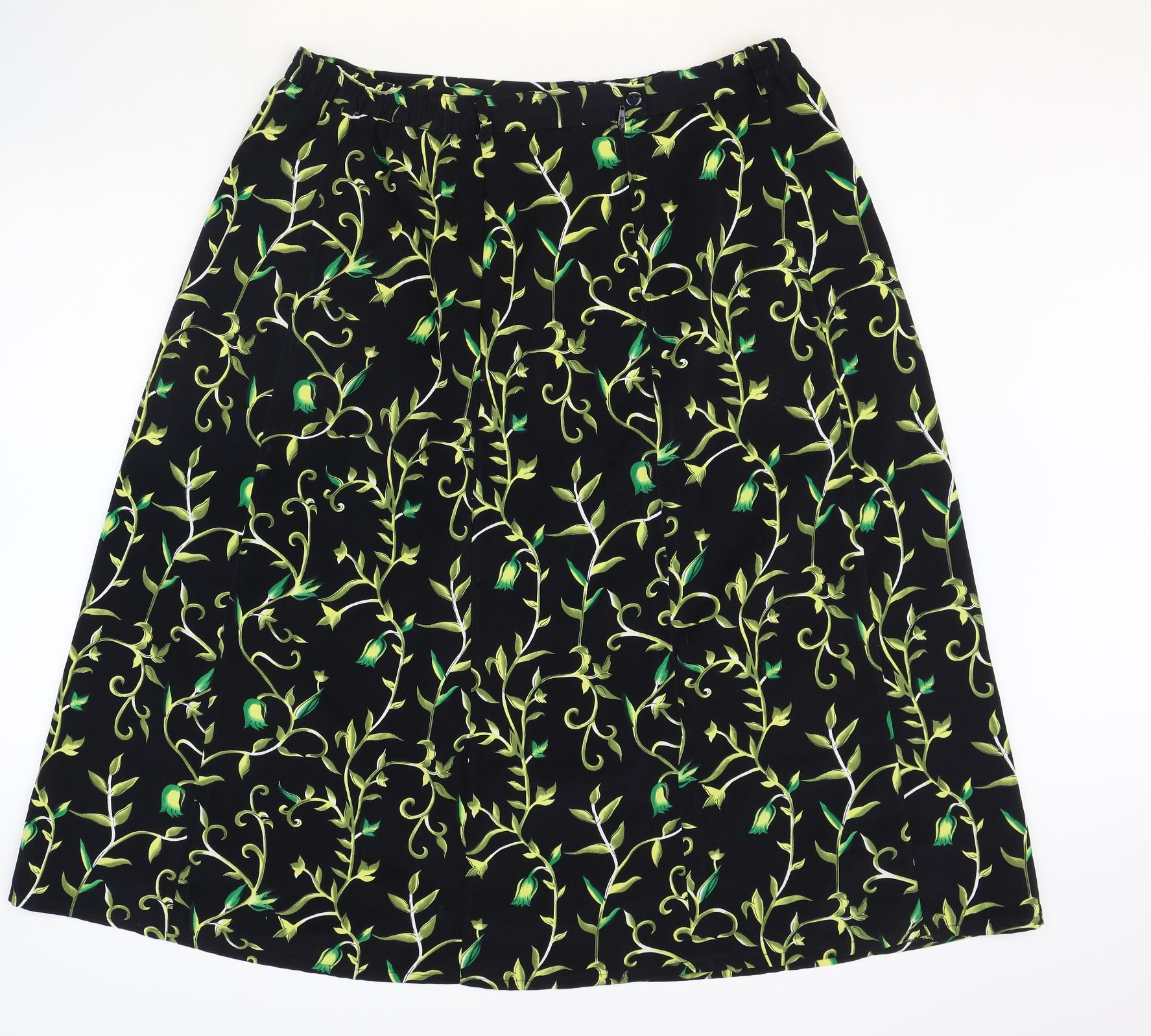 Daxon Womens Black Floral Polyester A-Line Skirt Size 34 in Zip