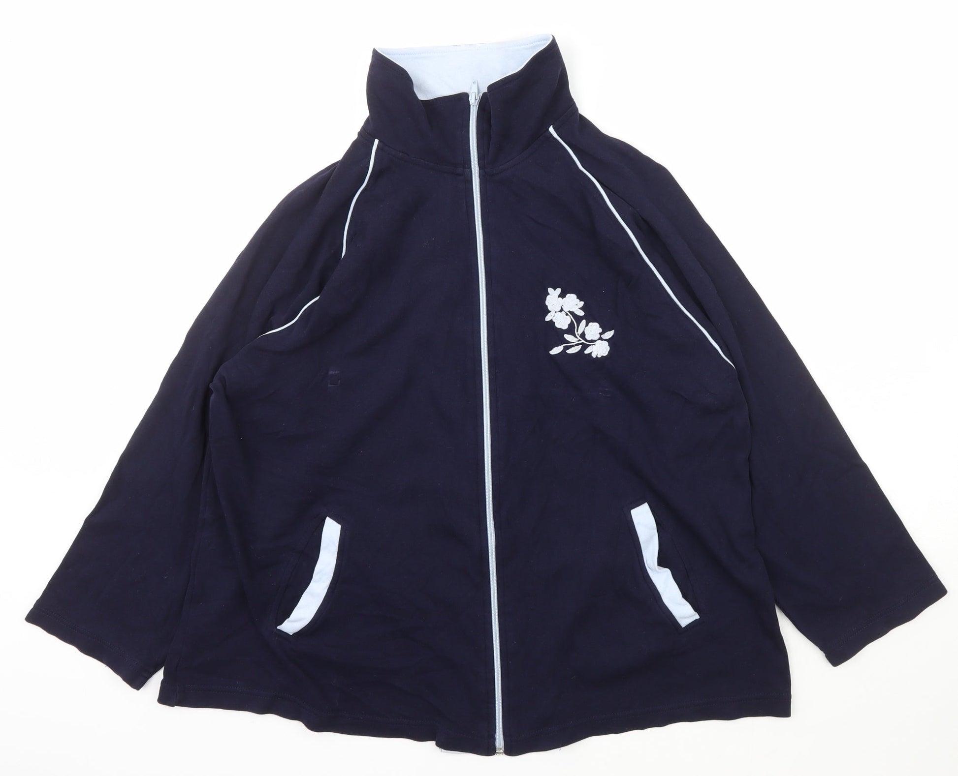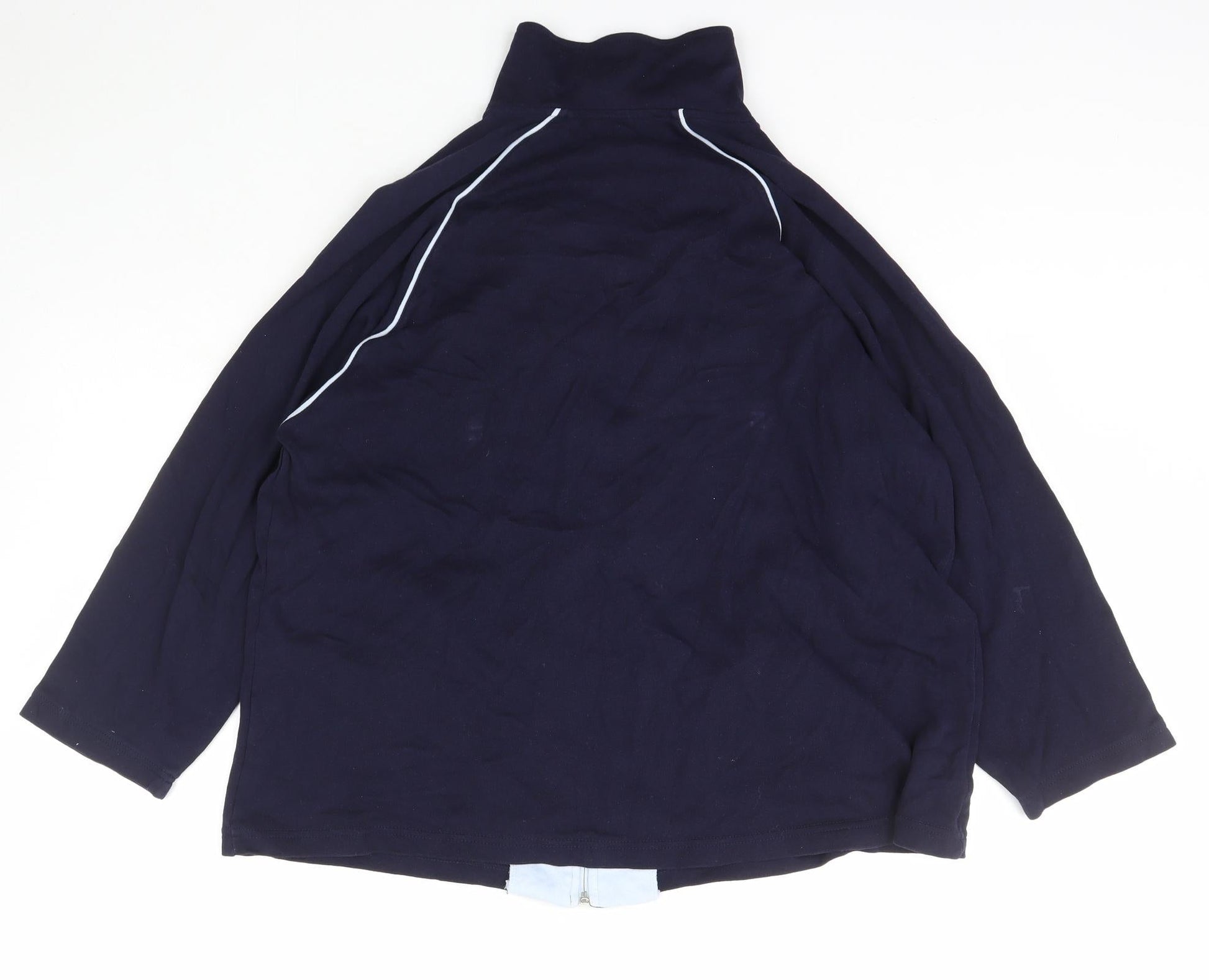 Daxon Womens Blue High Neck Cotton Full Zip Jumper Size 18