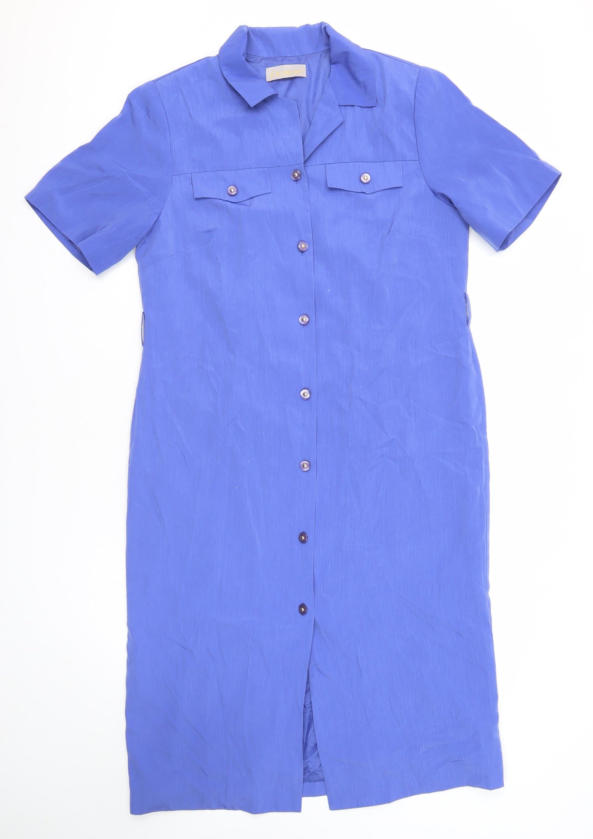 Daxon Womens Blue Polyester Shirt Dress Size 14 Collared Button