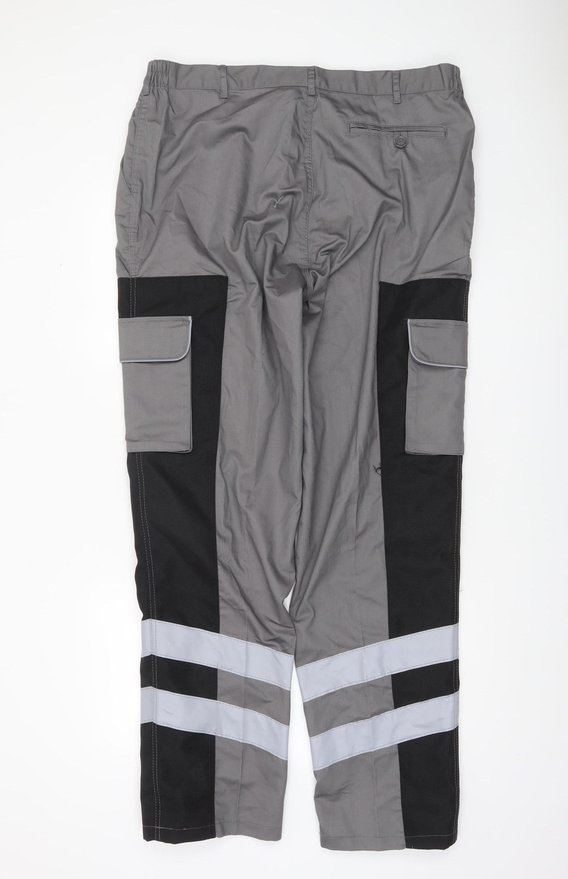 DCC Workwear Men's Grey Reflective Cargo Trousers 38L Polyester Cotton