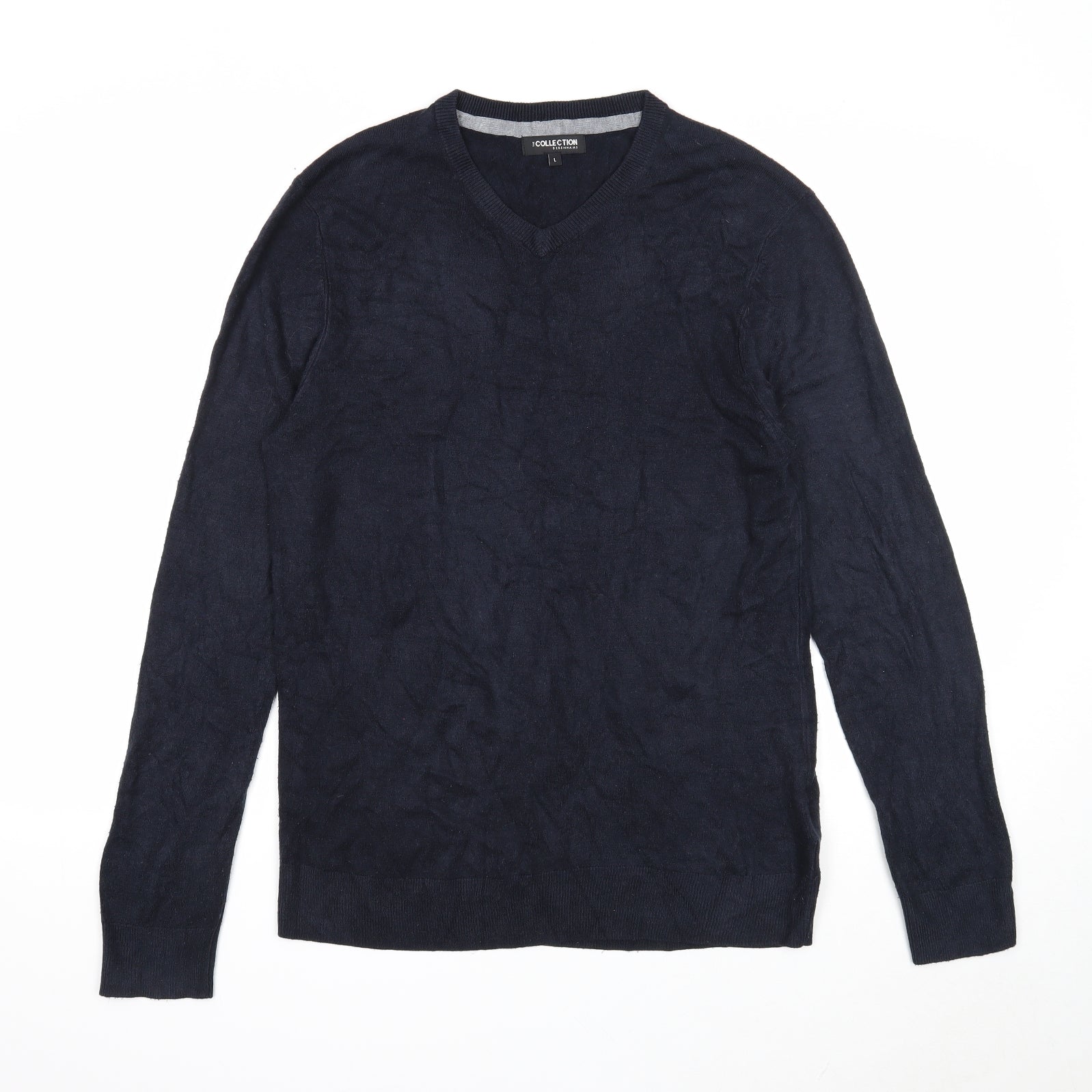 Debenhams Mens Blue V-Neck Acrylic Pullover Jumper Size L Long Sleeve