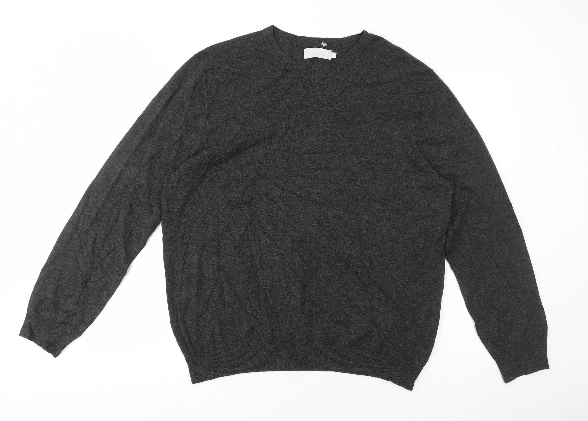 Debenhams Mens Grey V-Neck Viscose Pullover Jumper Size L