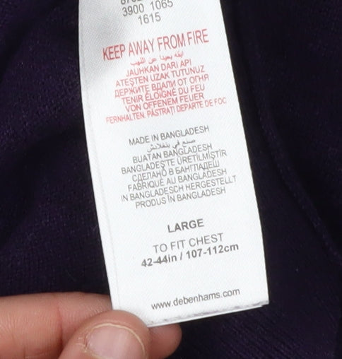 Debenhams Men's Purple V-Neck Pullover Jumper, Size L